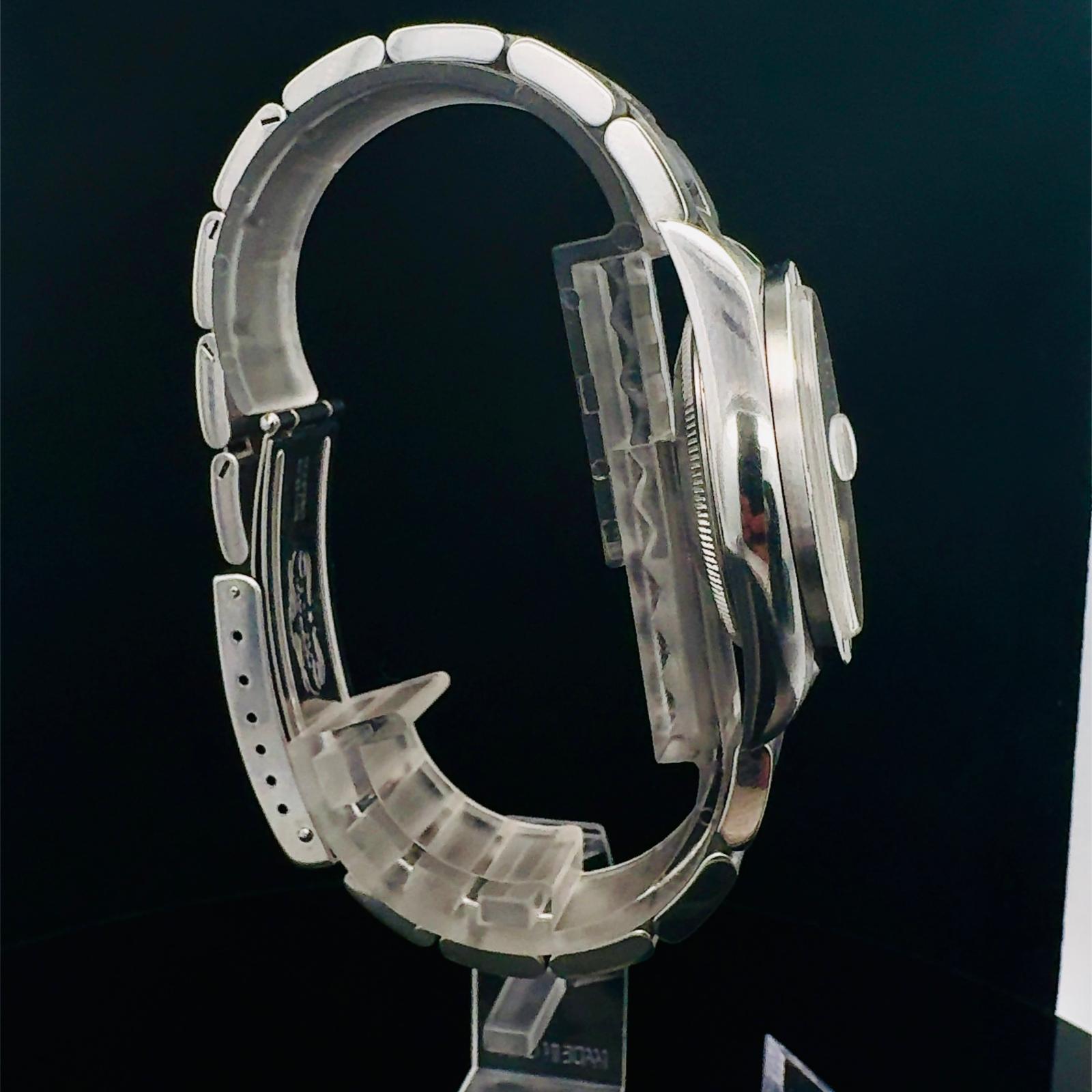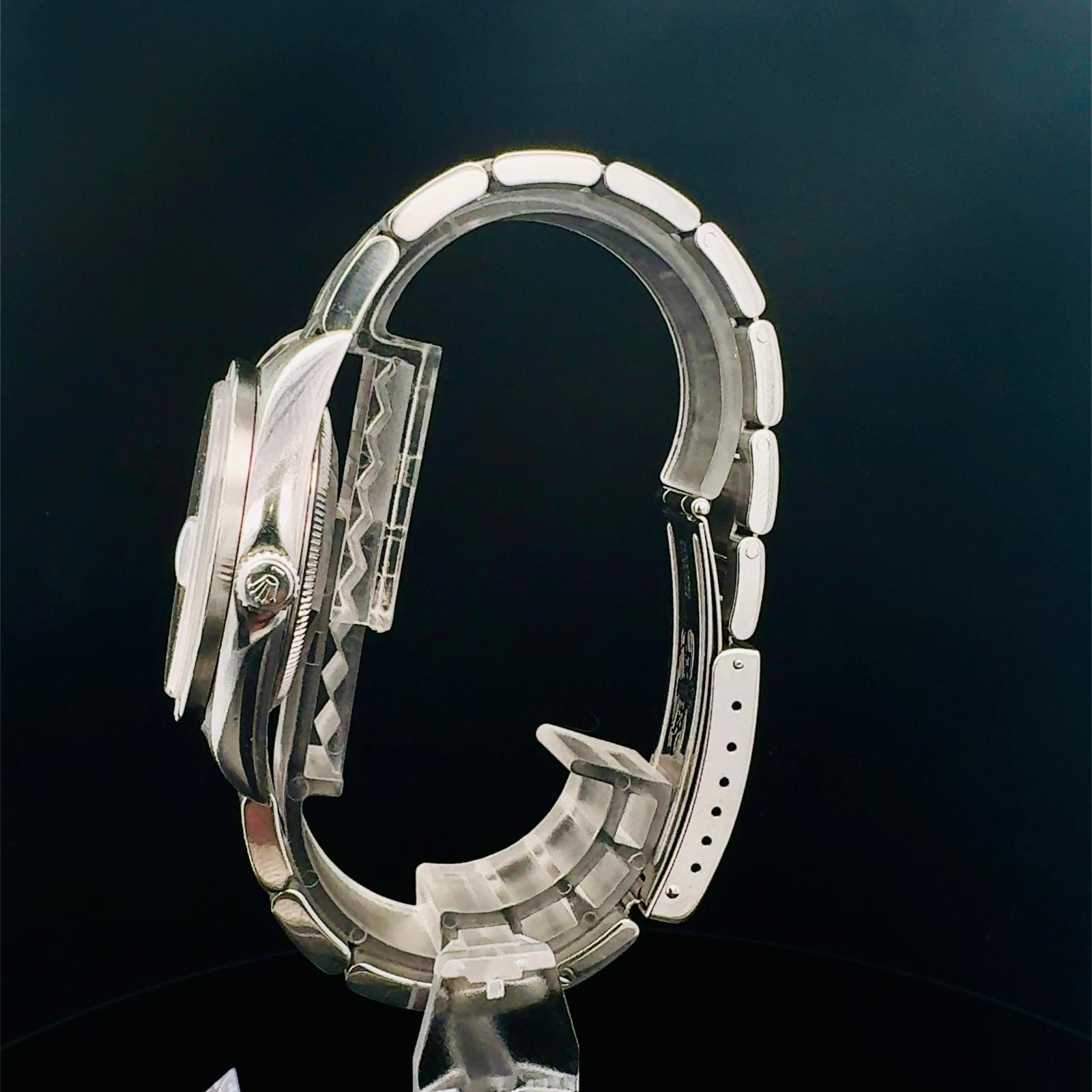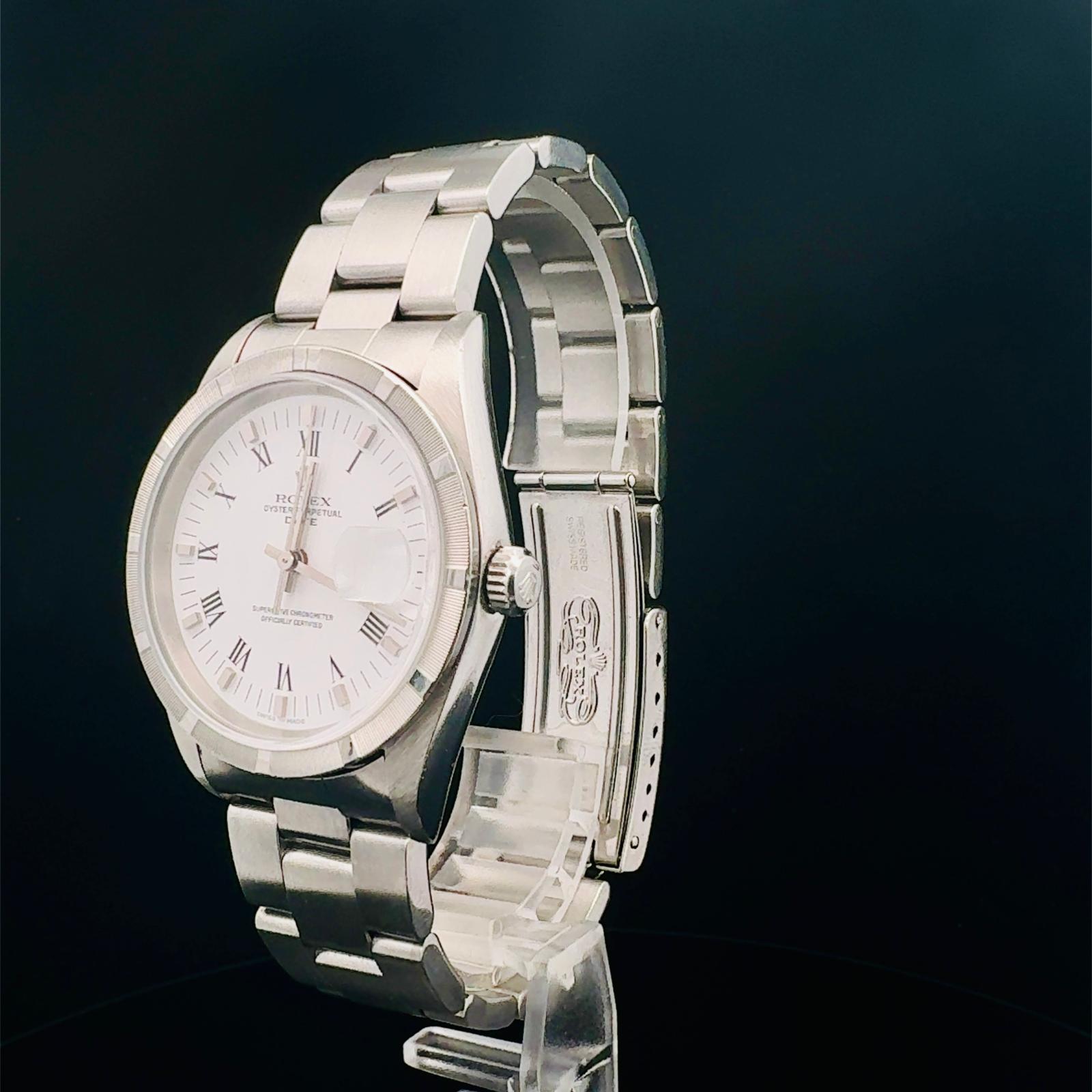 Marca Rolex Modello (Orologio) Oyster Perpetual Date Numero di referenza 15210 Carica Automatico Materiale della cassa Acciaio Materiale cinturino Acciaio Anno di produzione 2002 documenti originali, no box Carica Automatico Cassa Materiale della cassa Acciaio Diametro 34 mm Materiale lunetta Acciaio Vetro Vetro zaffiro Materiale cinturino Acciaio Chiusura Déployante Materiale chiusura Acciaio
