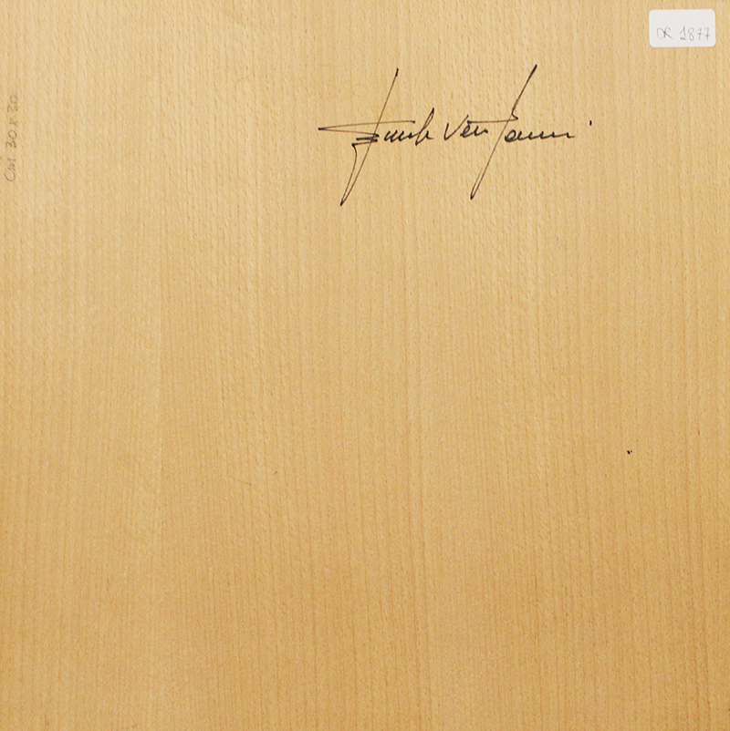 EMANUELE VENTANNI, tecnica mista su legno, dim 30x30. Al verso: firma in alto a destra e dimensioni in alto a sinistra.