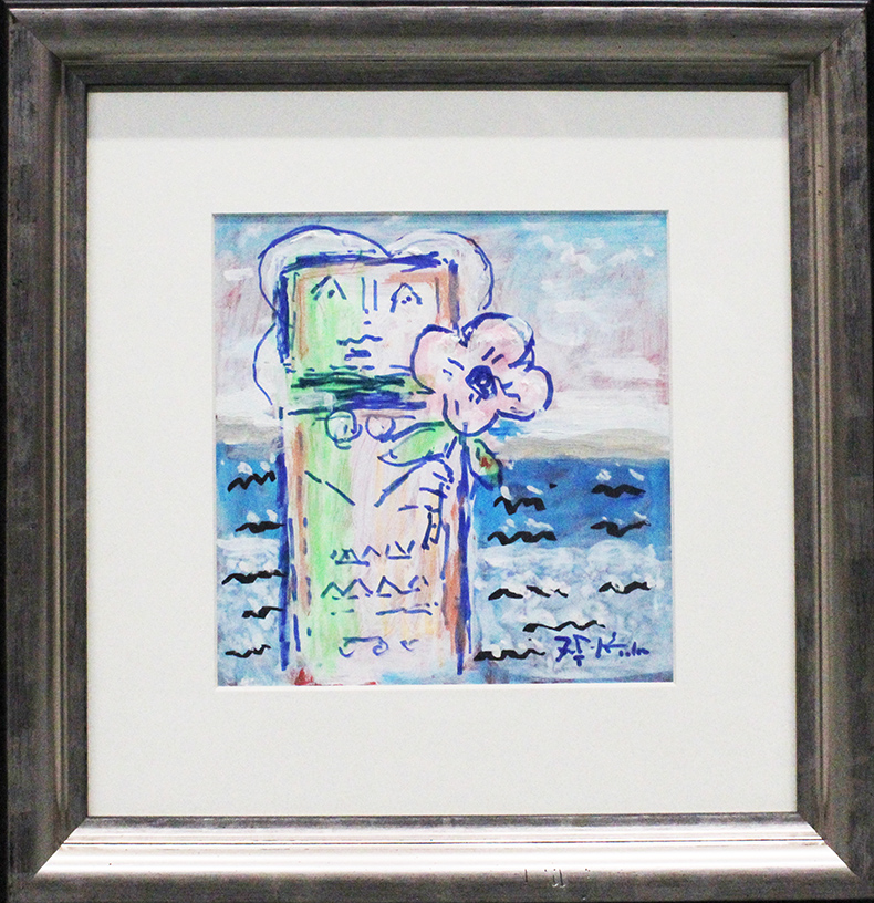 IBRAIM KODRA, tecnica mista su cartoncino, dim 20x20. Al fronte: firma in basso a destra