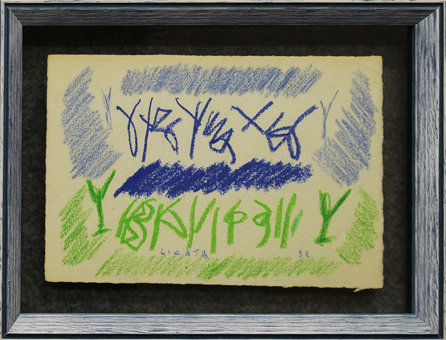 RICCARDO LICATA, "Eden", 1998, tecnica mista su cartoncino, dim 16,7x25,5, Archivio Generale delle opere di Riccardo Licata al N°18-9-022. Al fronte: firma al centro e anno a destra. Opera con cornice.