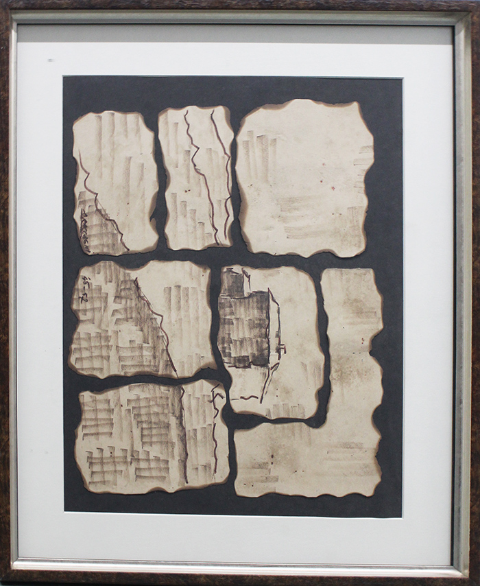 ANDREA RACCAGNI, "La casa bruciata", 1946-57, Tecnica mista su cartoncino, Dim.40x48. Al fronte: firma e anno in basso al centro. Opera con cornice.