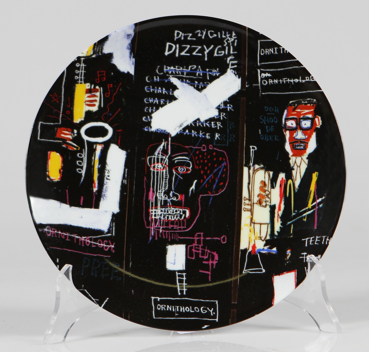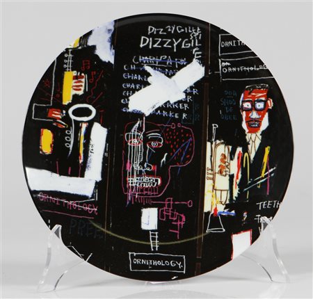 BASQUIAT JEAN-MICHEL (1960 - 1988) D'APRES. Horn players (1983). piatto. Cm 21,00 x 21,00. Piatto in porcellana di limoges riportante al retro la firma dell'artista a stampa e il marchio Estate of Jean-Michel Basquiat.