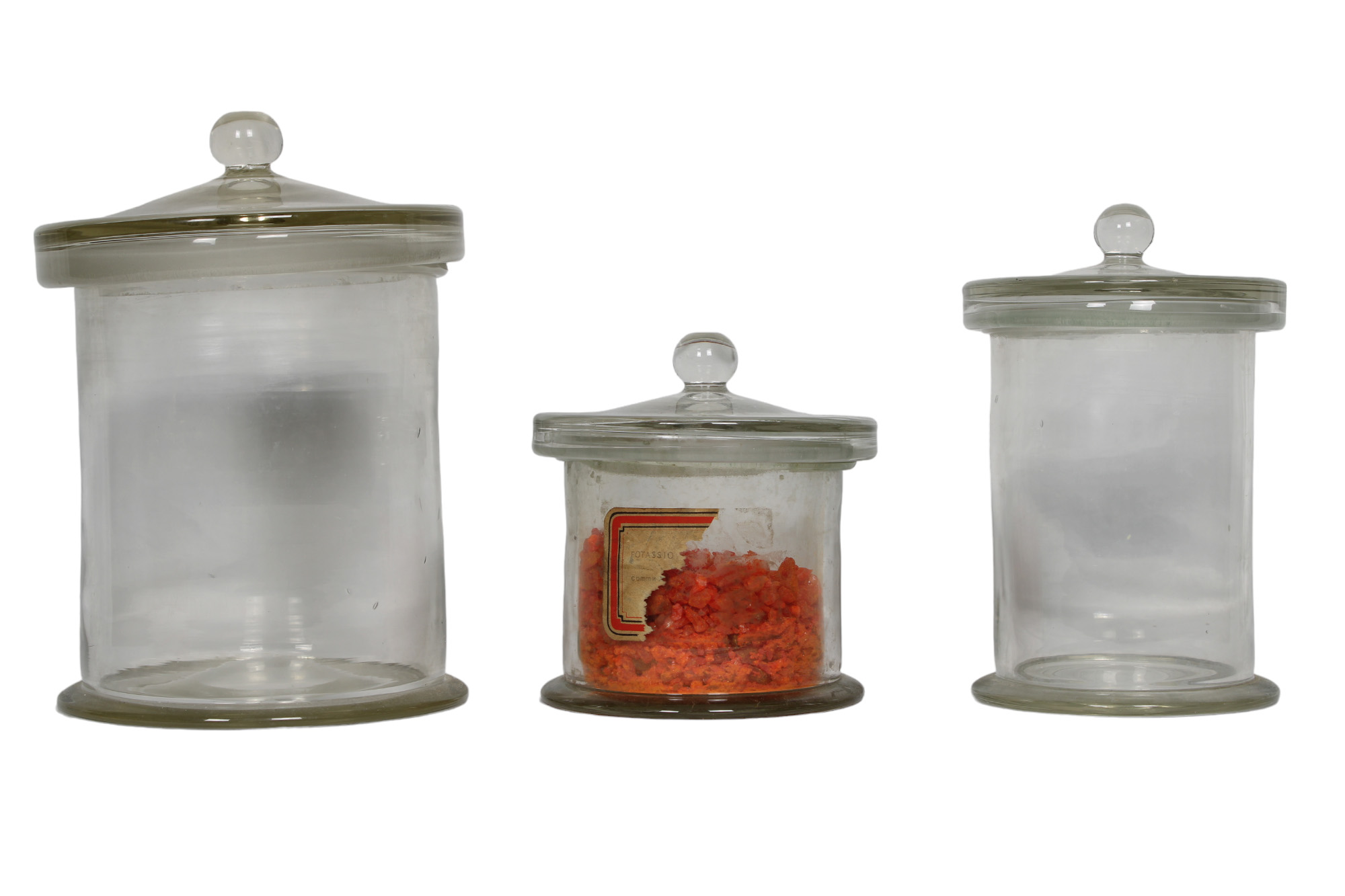 3 GRANDI VASI DA FARMACIA in vetro XIX / XX secolo misure varie