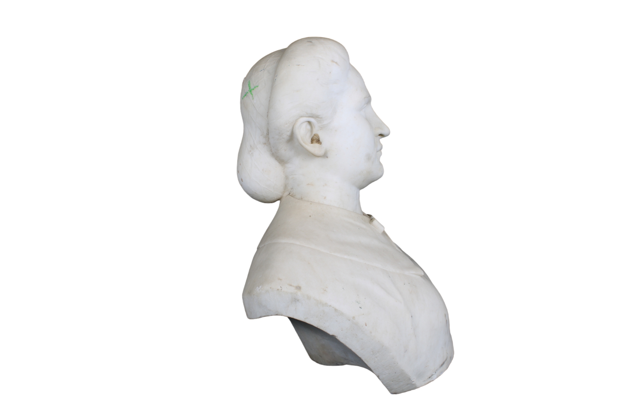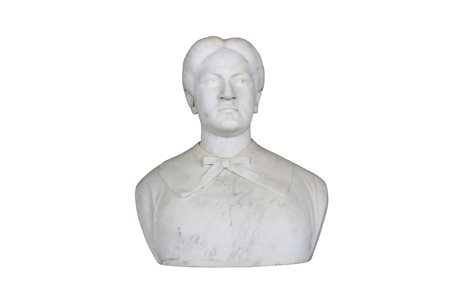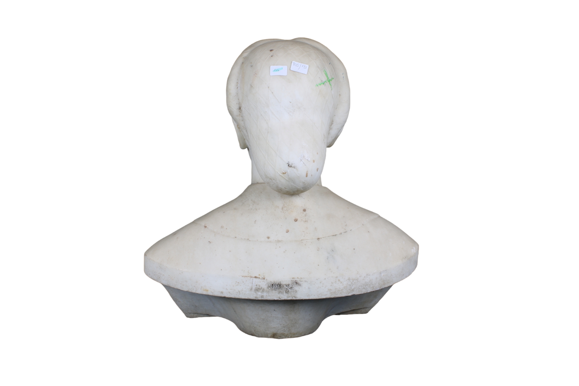 BUSTO SCOLPITO su marmo bianco di Carrara raffigurante nobil donna maestranze italiane XIX secolo h cm 55 x 50 x 35
