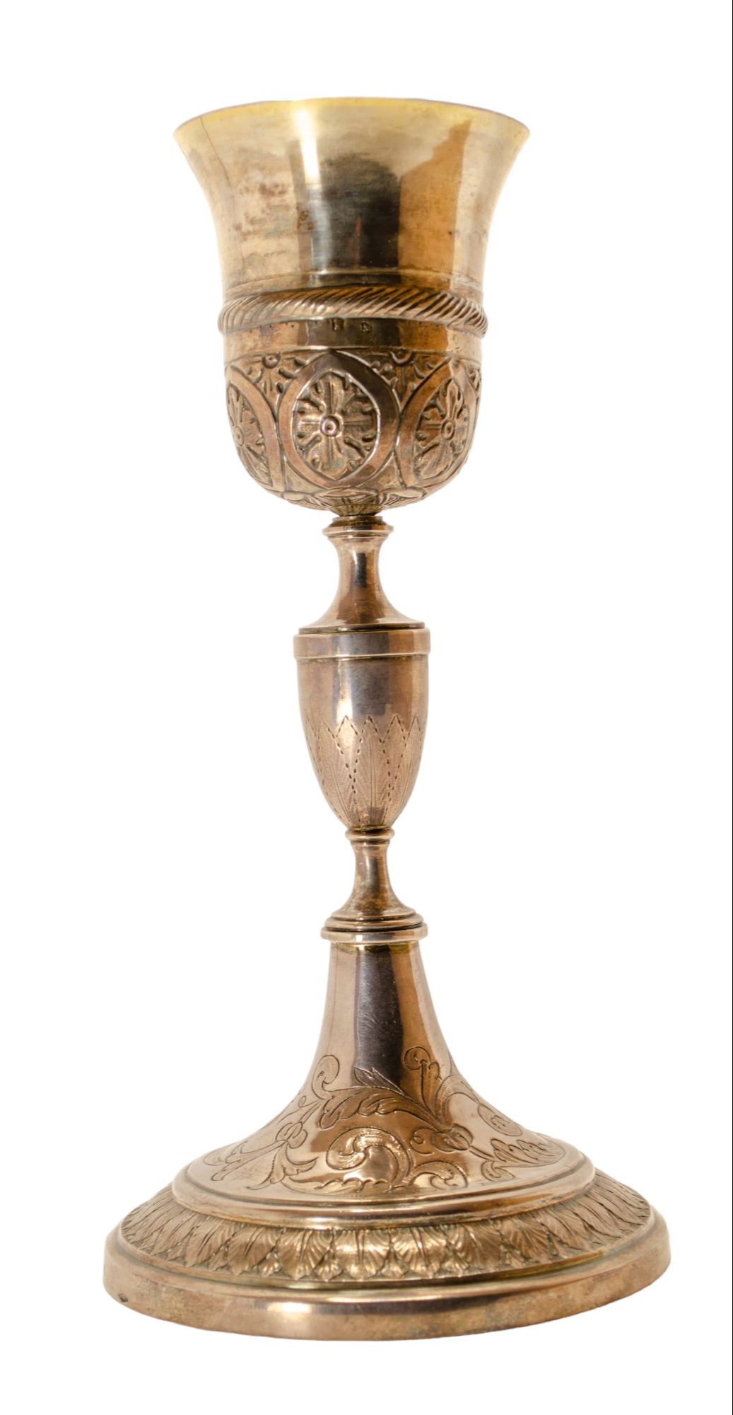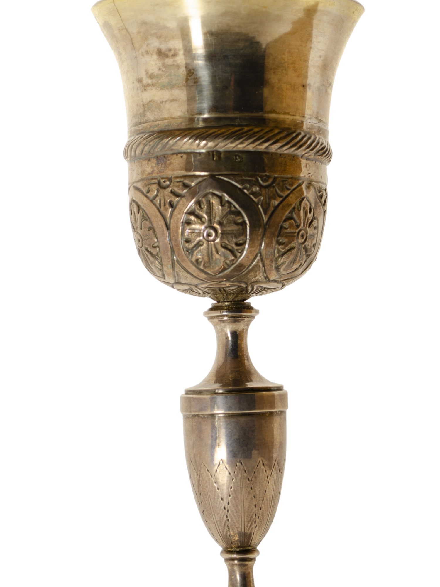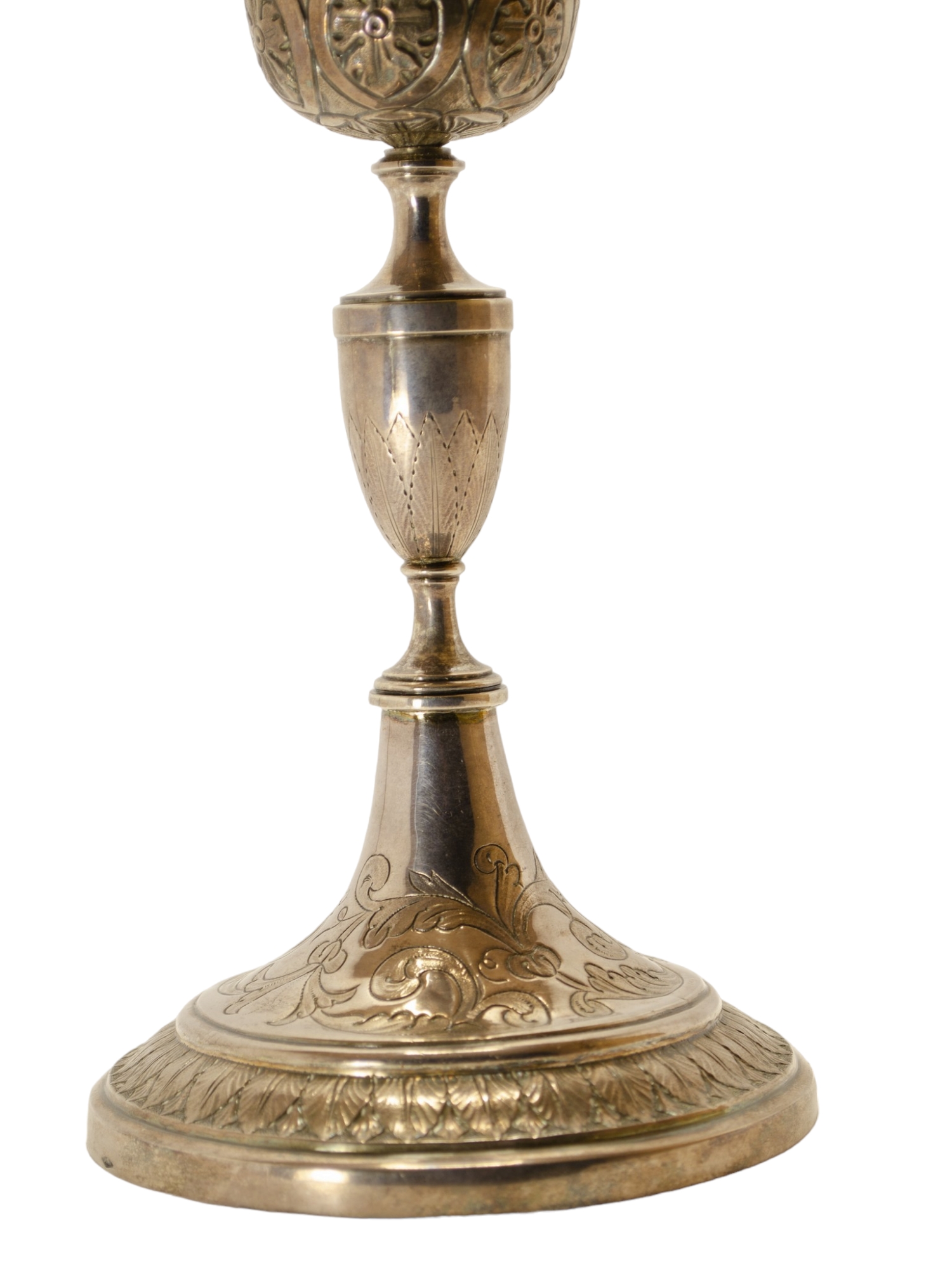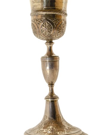 CALICE in argento Finemente cesellato a motivi vegetali e girali , base circolare reca dedica incisa con scritta postuma , grammi 250 Italia XIX secolo h cm 23,5 x Ø 11,5