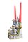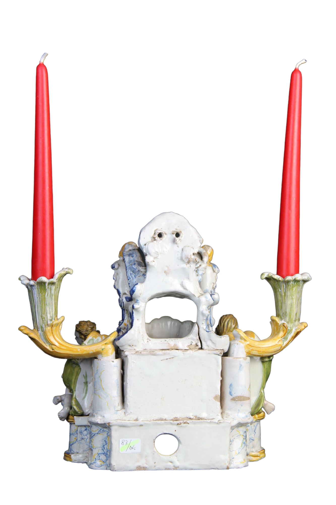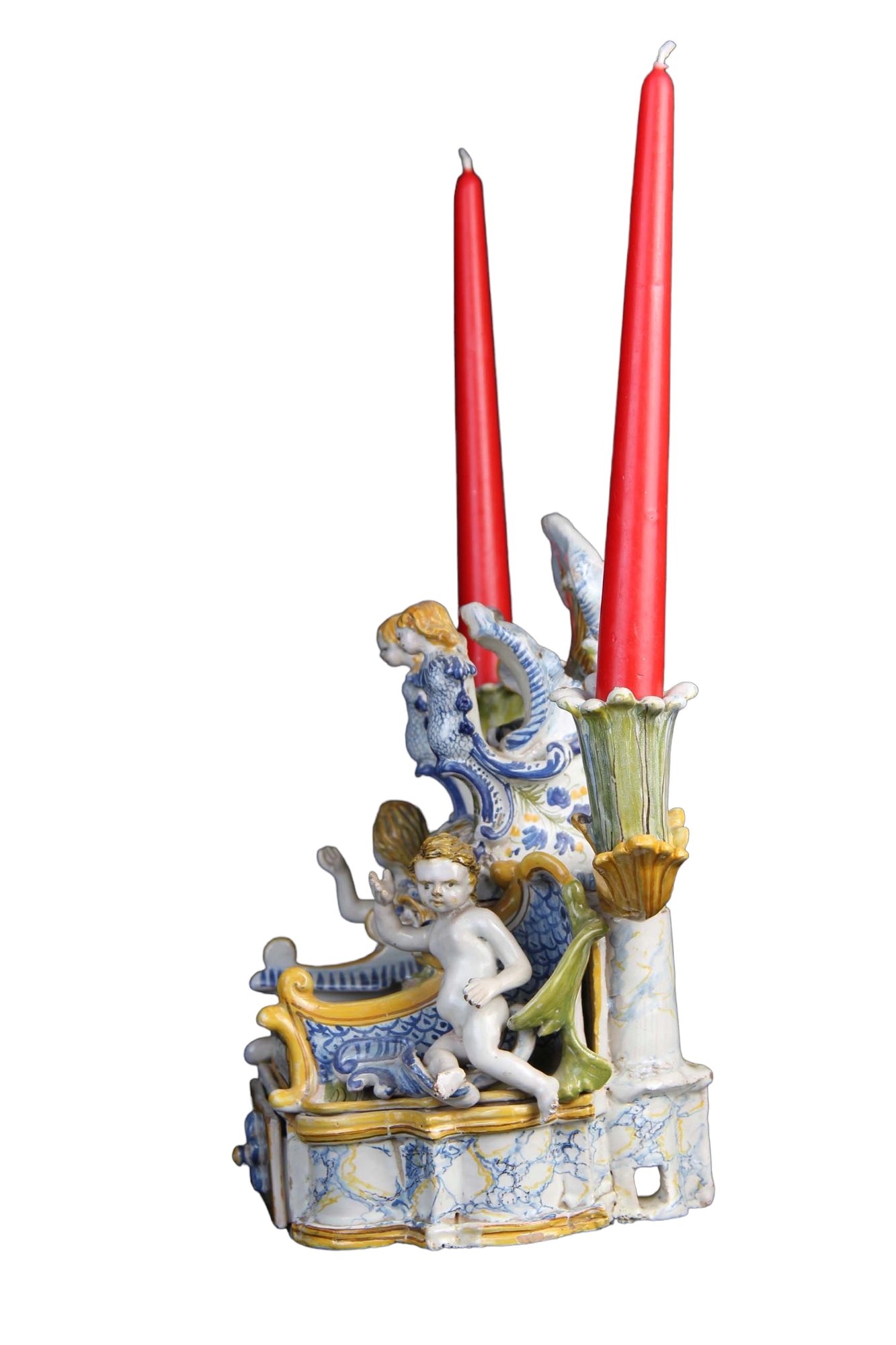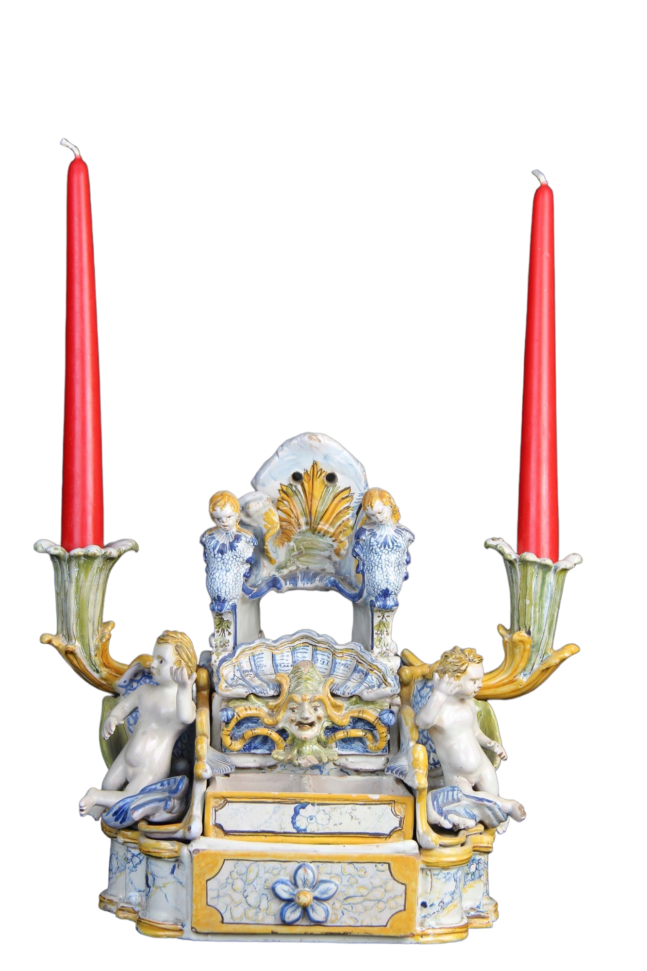 IMPORTANTE CALAMAIO in maiolica policroma nei toni del giallo, blu e verde raffigurante putti , piccoli restauri Caltagirone primi XVIII secolo