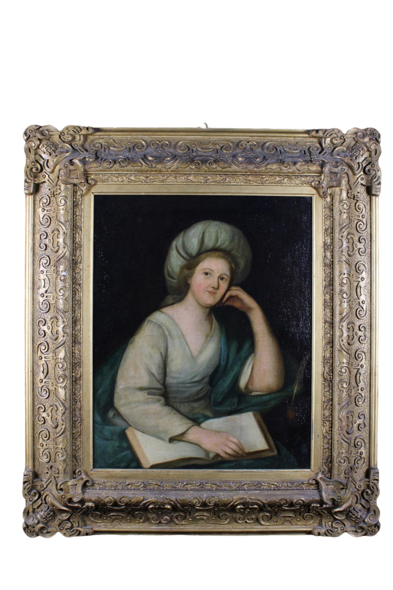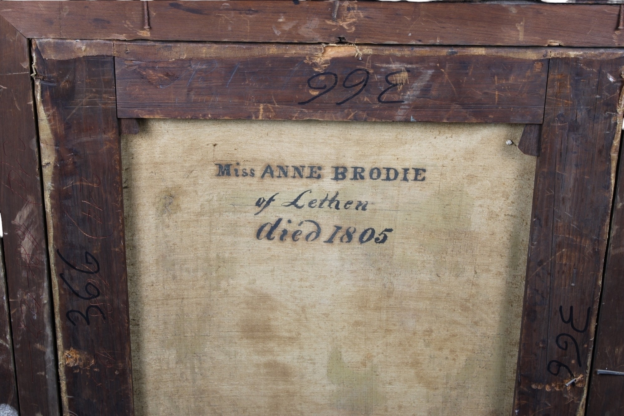 OLIO SU TELA raffigurante Miss Anne Brodie come da scritta sul retro dentro bella cornice in legno dorato scuola inglese XIX secolo h cm 63 x 50 / cornice h cm 93 x 82