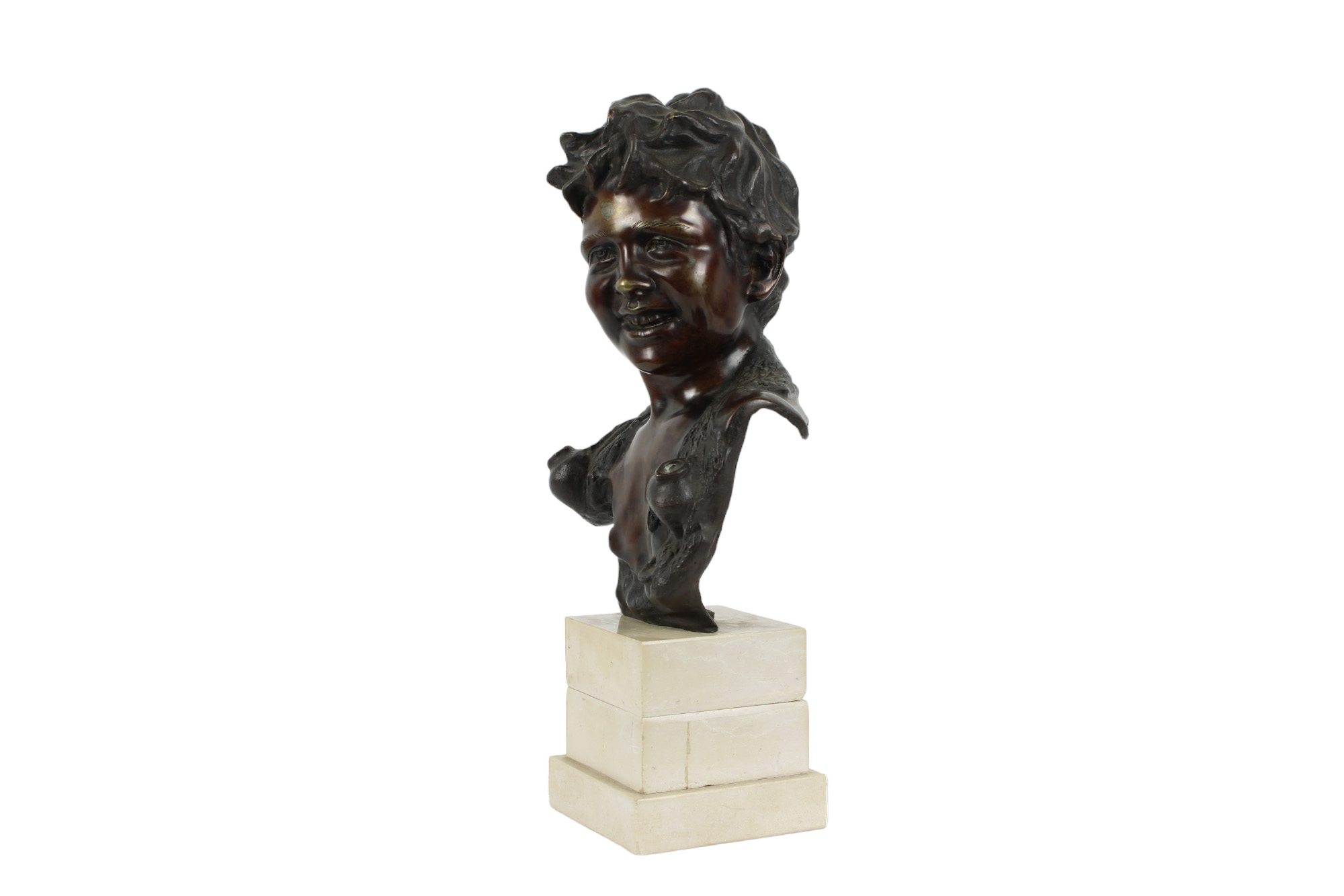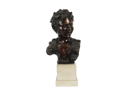 SCULTURA in bronzo raffigurante busto di fanciullo acquaiolo con base in marmo FIRMATA VINCENZO CINQUE (1952-1929) h cm 40 x 17 x 11,5