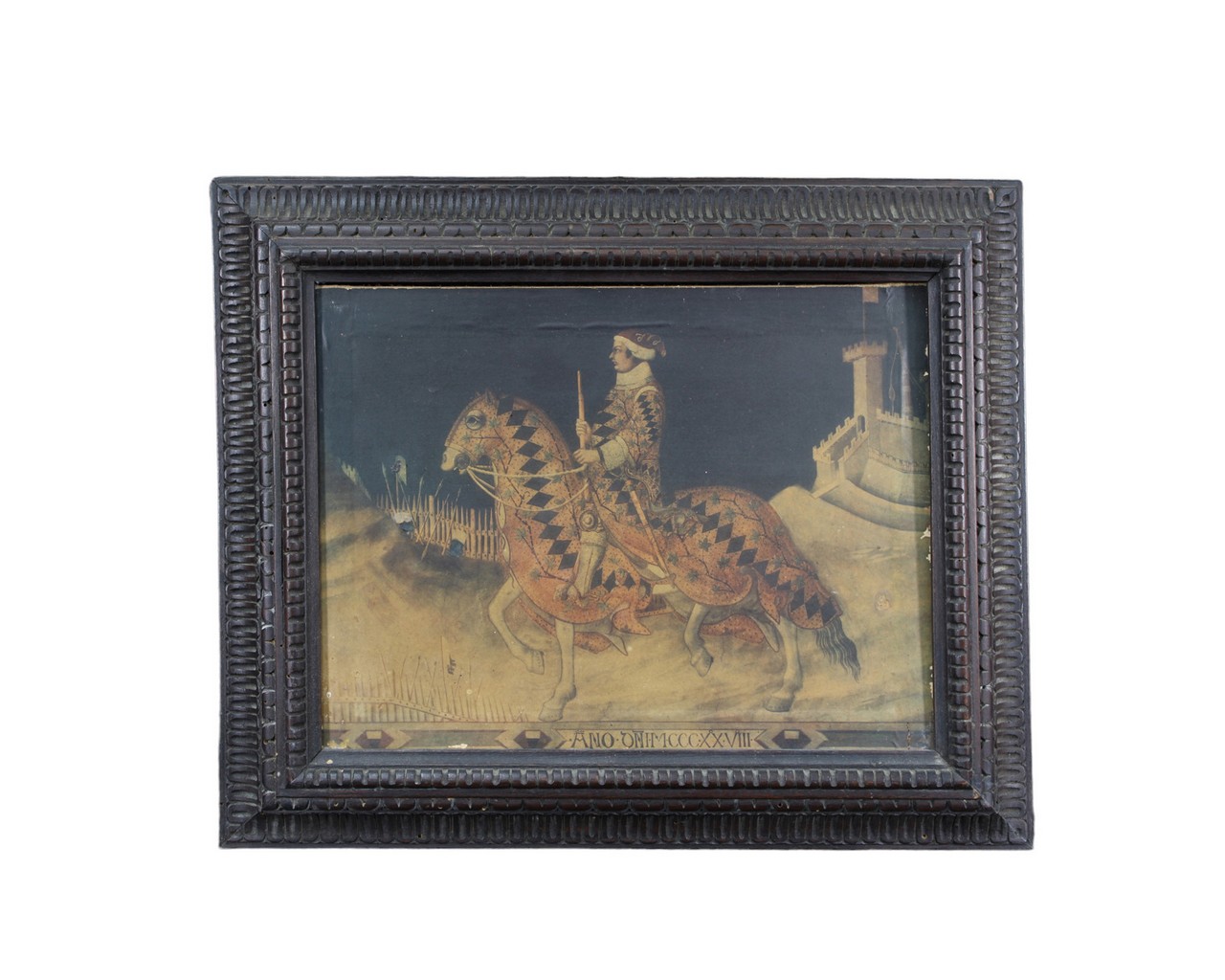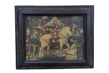 COPPIA DI CORNICI in legno di noce riccamente scolpite contenenti stampe telate Sicilia primi 900 h cm 30 x 40