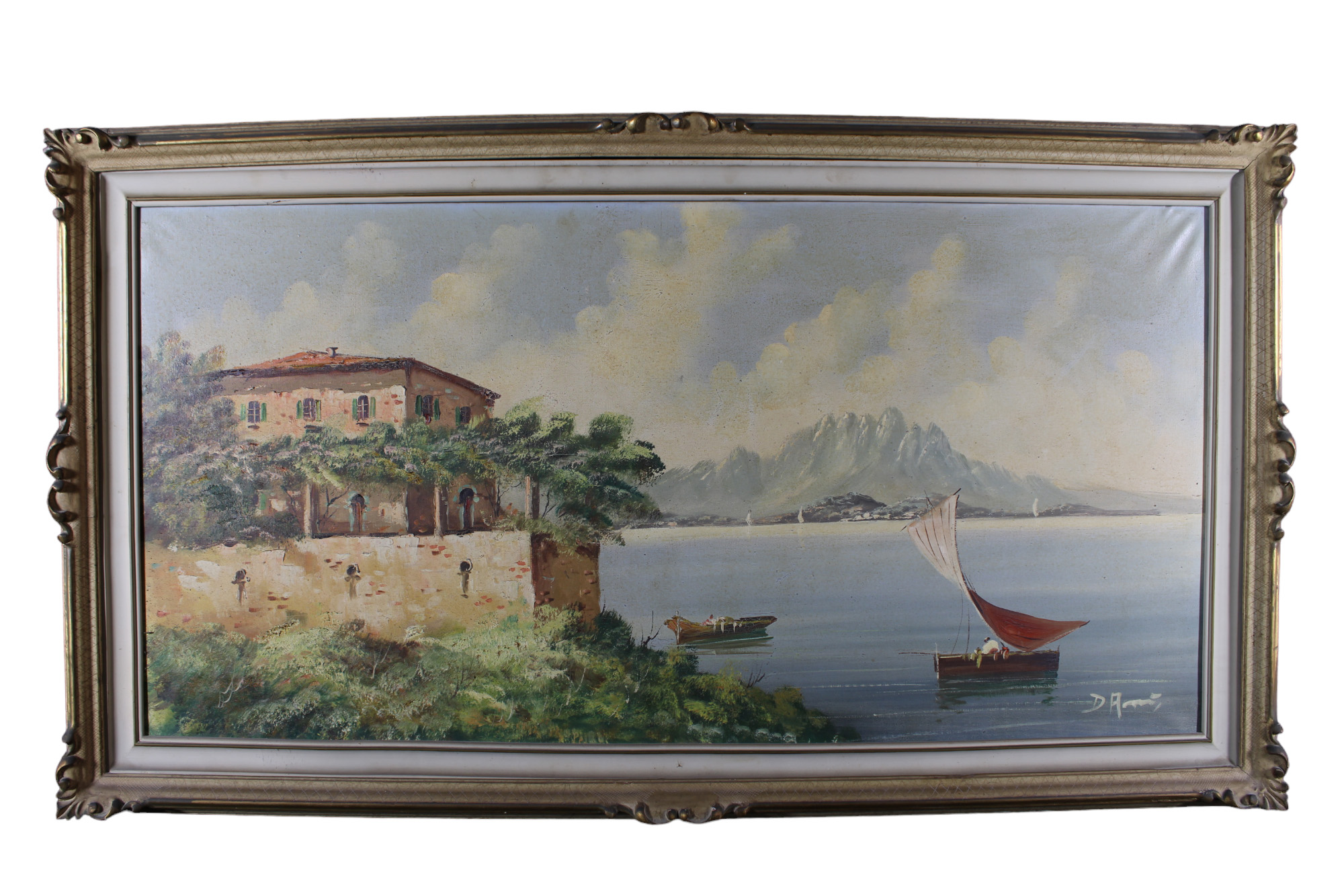 Precedente Lotto 240 Successivo Trionfante Antiques - VIA ALTOFONTE 82, 90129 PALERMO ASTA DI ANTIQUARIATO VINTAGE E COLLEZIONISMO ASTA ANTIQUARIATO VINTAGE E COLLEZIONISMO venerdì 28 giugno 2024 ore 10:30 (UTC +01:00) OLIO SU TELA OLIO SU TELA Paesaggio marino h cm 60 x 120