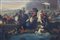OLIO SU TELA raffigurante battaglia dentro cornice in legno incisa a fuoco a motivi floreali manifattura italiana XIX secolo h cm 80 x 90 / h cm 100 x 100