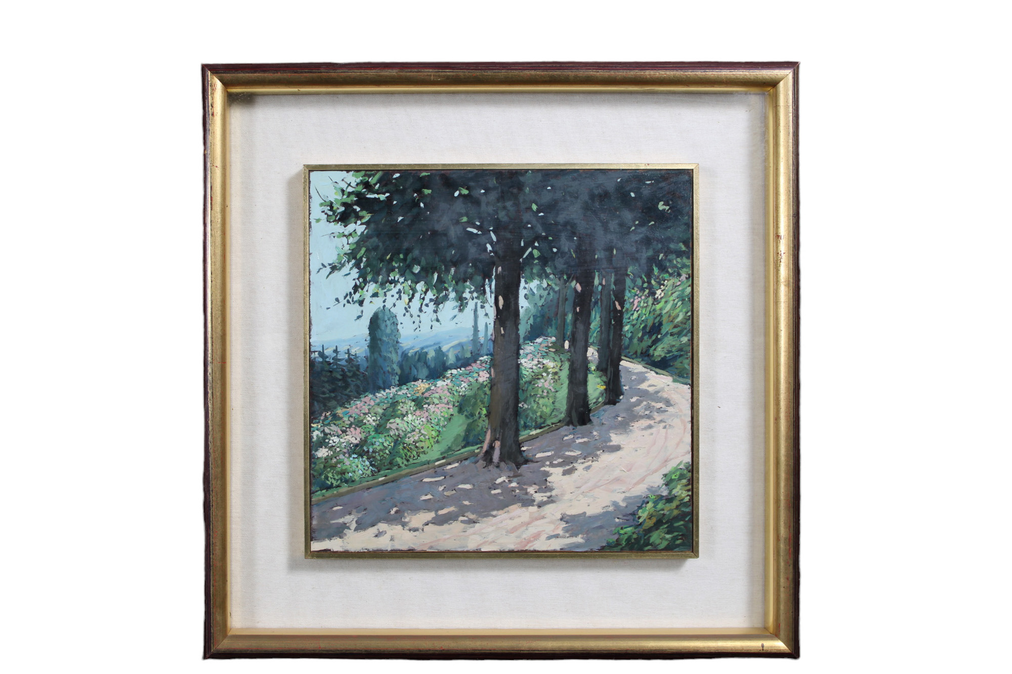 OLIO SU TAVOLA raffigurante Scorcio di Baucina h cm 28 x 28