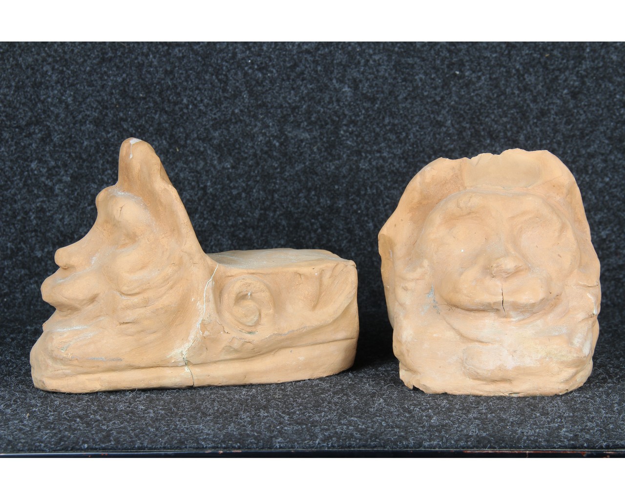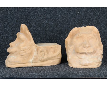 DUE MENSOLE in terracotta, rotture e incollaggio manifattura siciliana XX secolo h cm 18 x 22 x 15