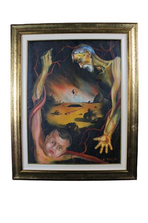 B.RYCEB olio su tela figura surrealista datato 1991 h cm 80 x 60