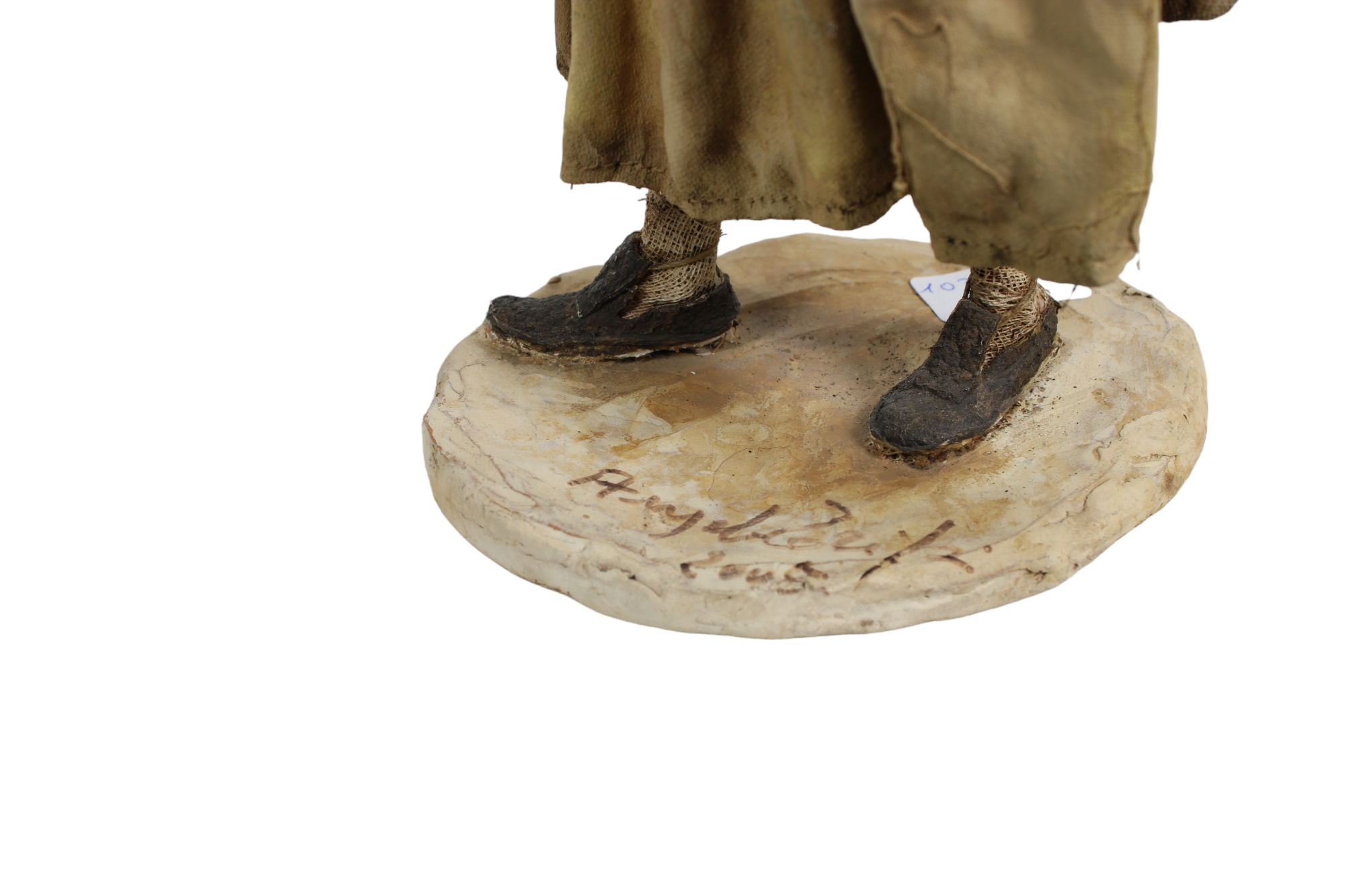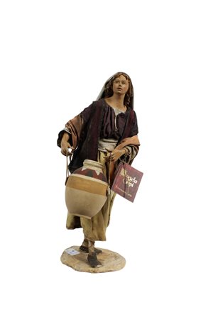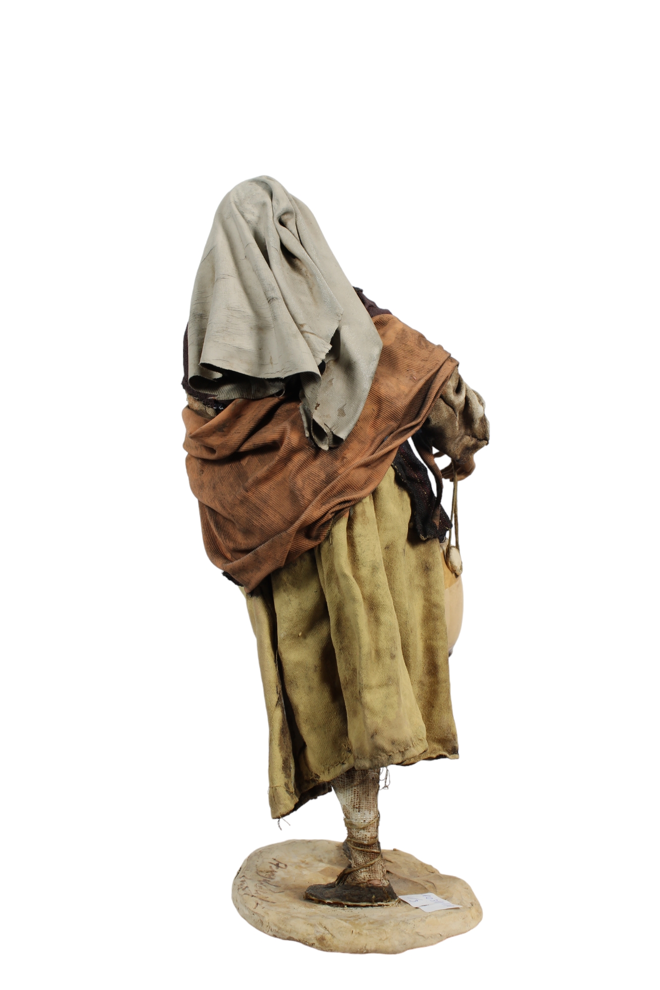 SCULTURA DA PRESEPE in terracotta e cartapesta dipinta raffigurante donna con orcio manifattura Angela Tripi XX secolo h cm 33