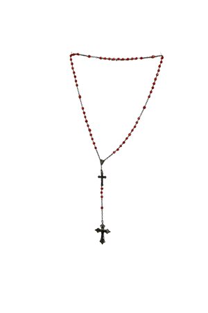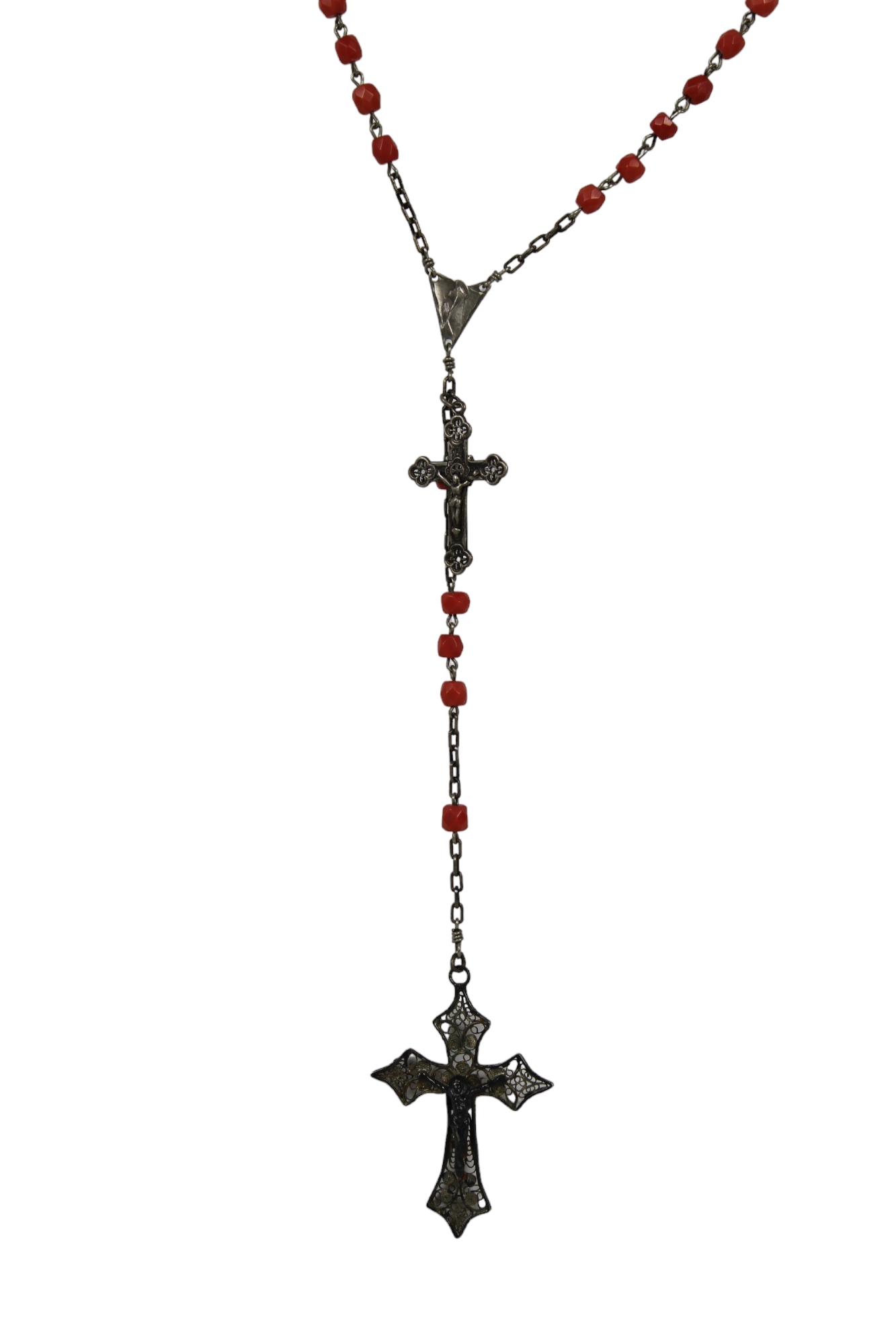 ROSARIO in argento e perline di corallo trapanese sfaccettato Sicilia XIX/XX secolo