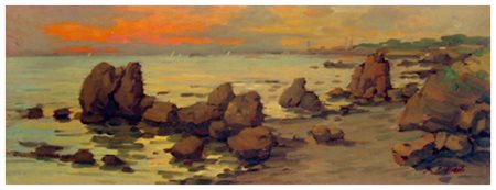 SERGIO DIFFICILI Antignano 1925 – 2007 Senza titolo 1971 Olio su tavola 13 x 35. Firma in b. a d.; sul verso firma e data.