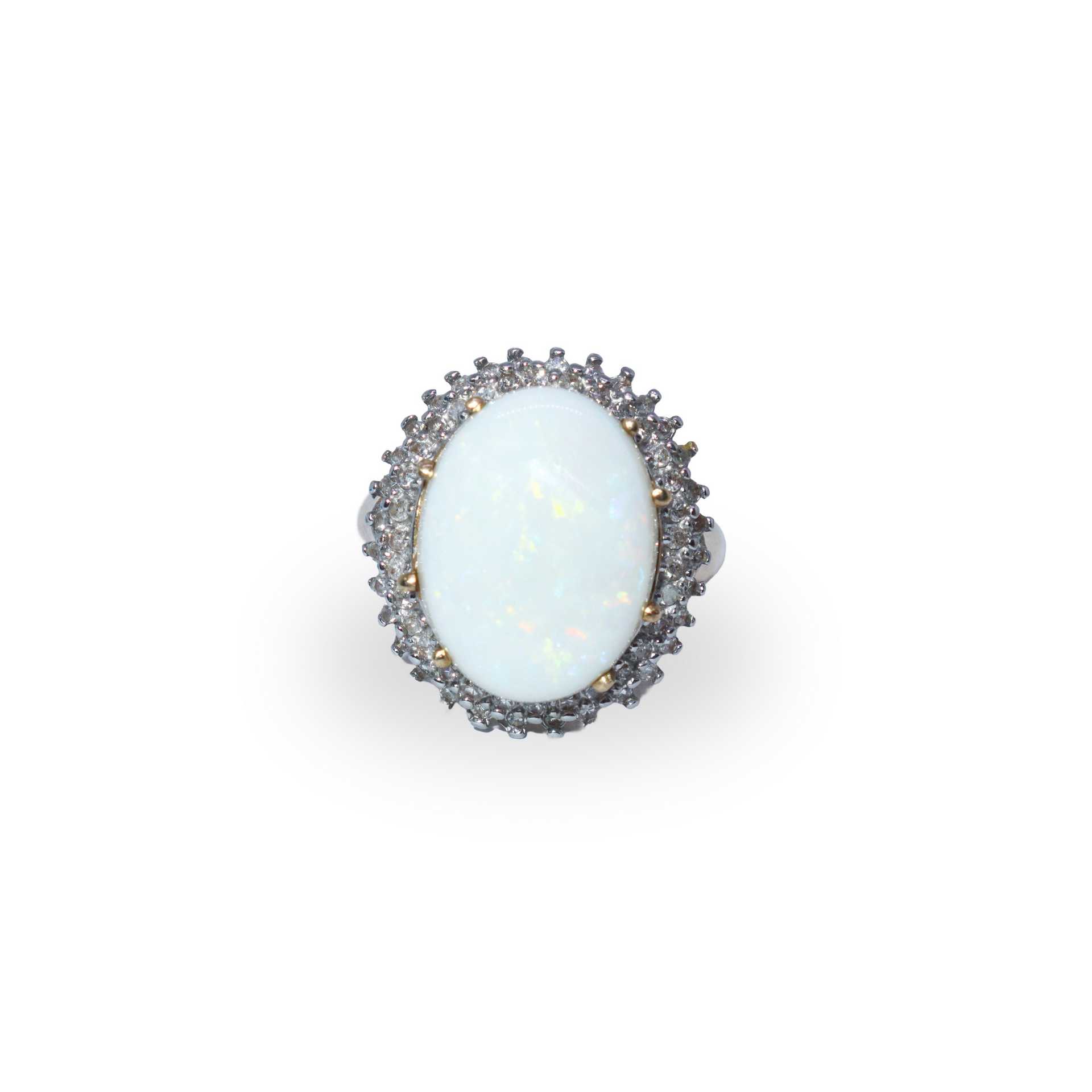 Anello in oro giallo 14 kt con opale e ghiera di brillanti