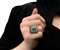 Anello in oro e argento con rosette di diamanti e radice smeraldo centrale