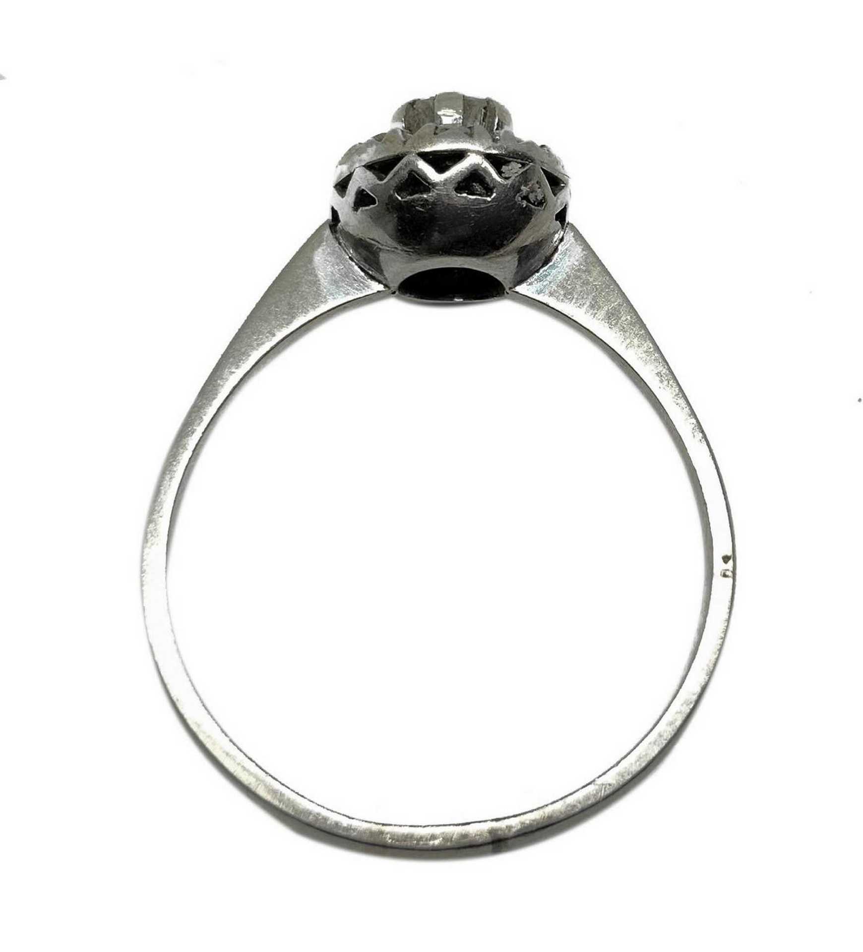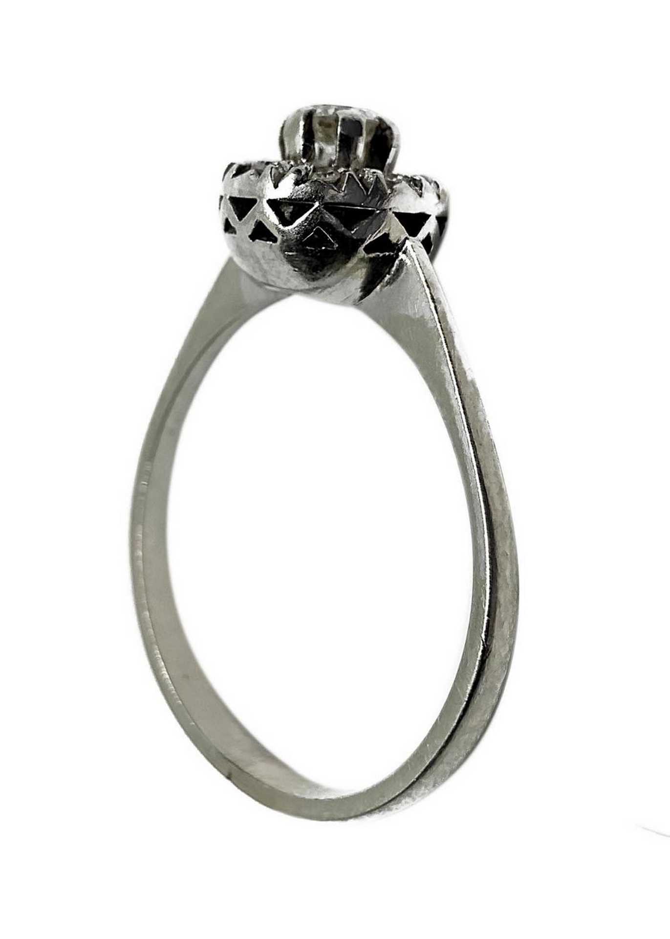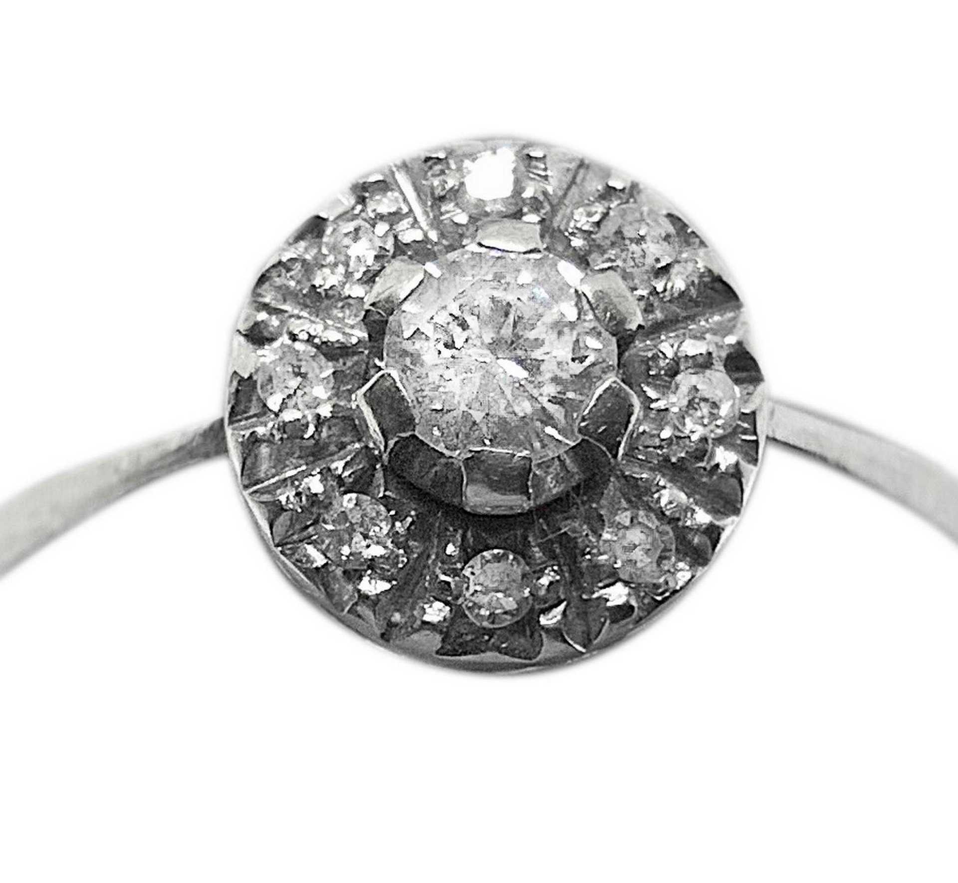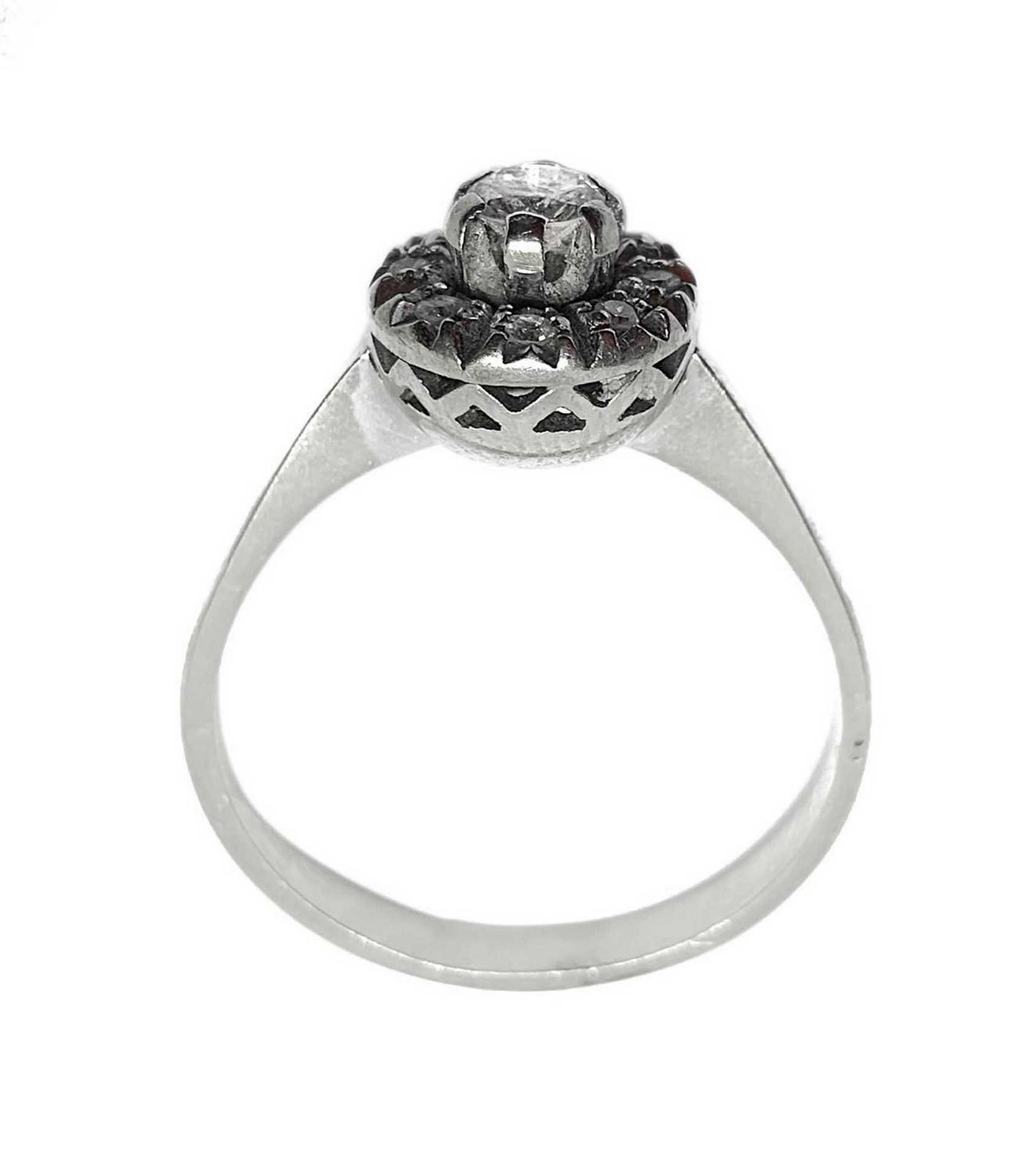 Anello a rosetta in oro bianco Gr 3.3 Con brillante al centro e giro di brillantiCon brillante al centro e giro di brillanti