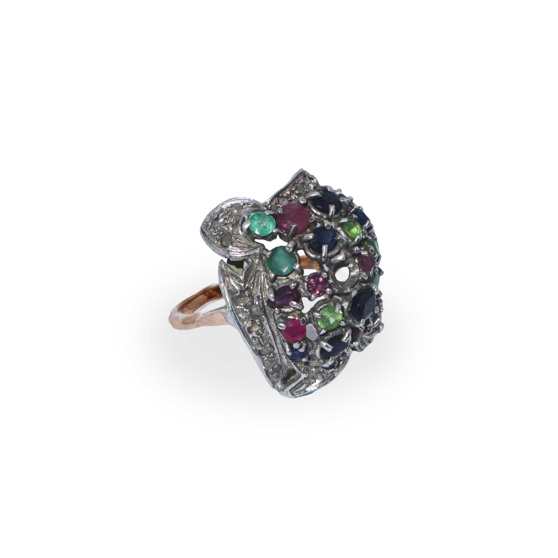 Anello in oro basso titolo e argento con pietre colorate Gr 11,9 misura 18,5 Presenti due pietre mancantiPresenti due pietre mancanti