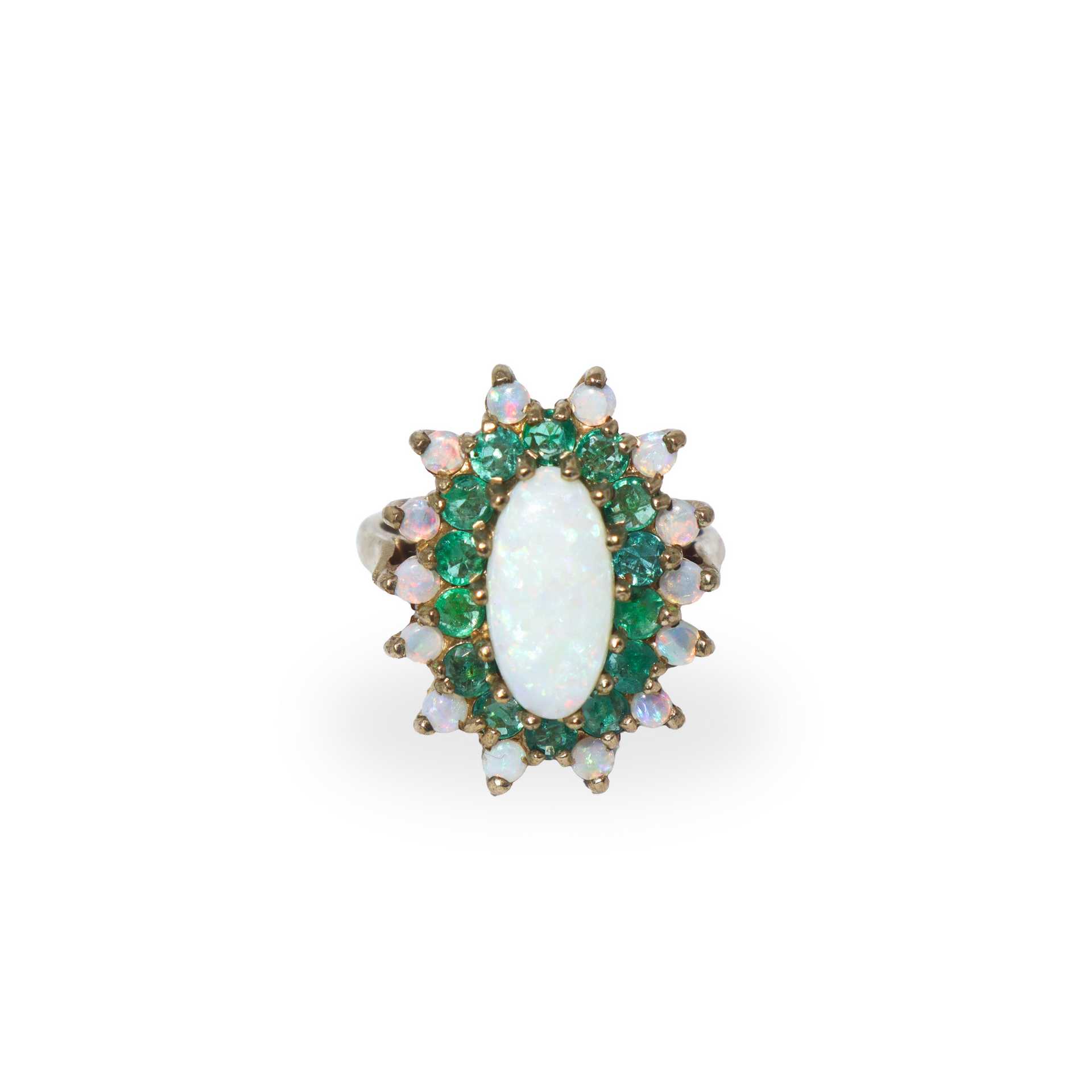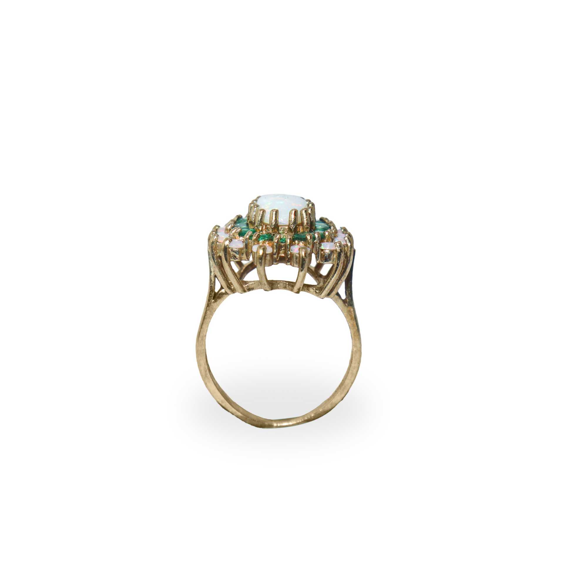 Anello in oro 9 kt con peridoto e smeraldi.