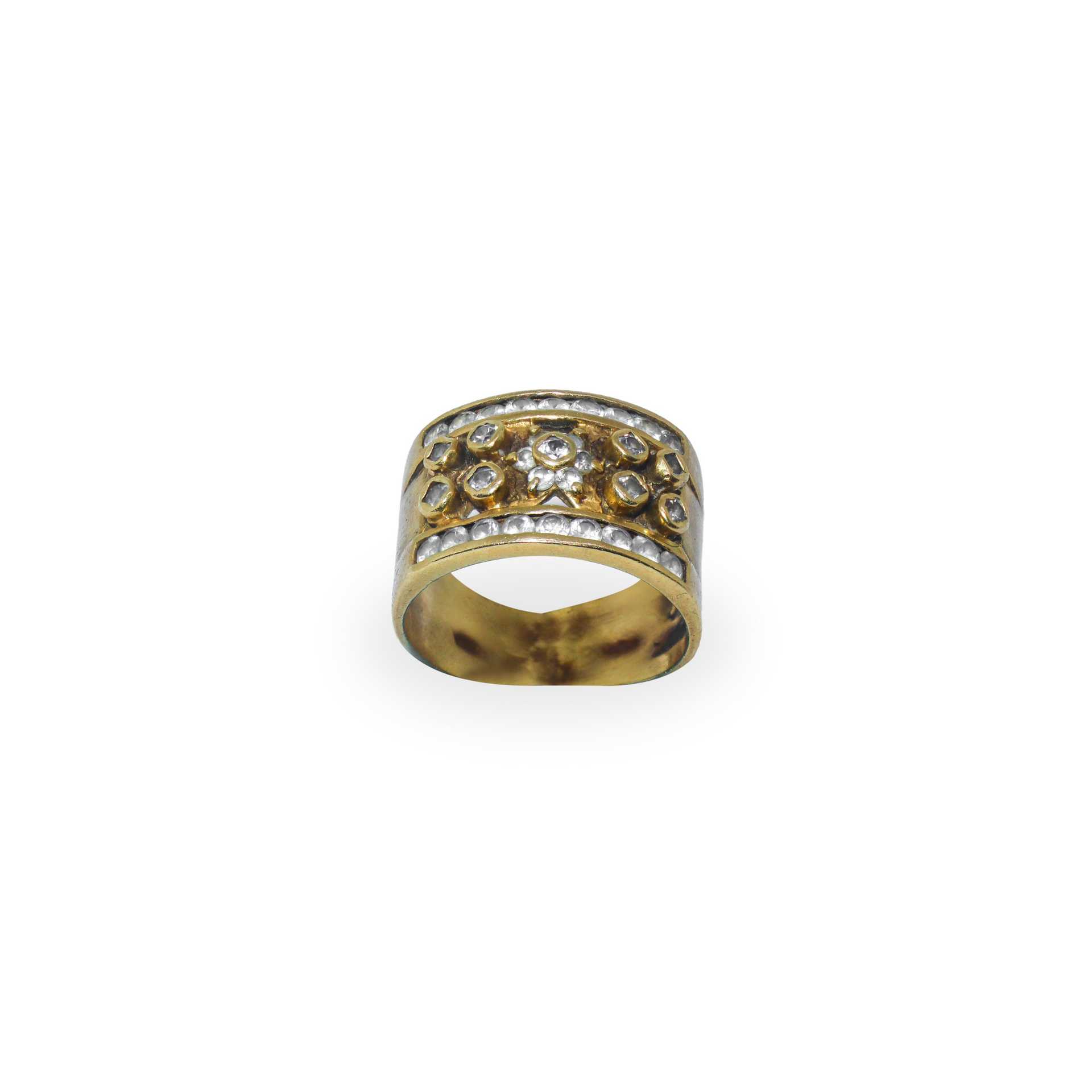 Anello a fascia in oro con gemme trasparenti misura 18, gr 8 Lieve malformazione sul retroLieve malformazione sul retro