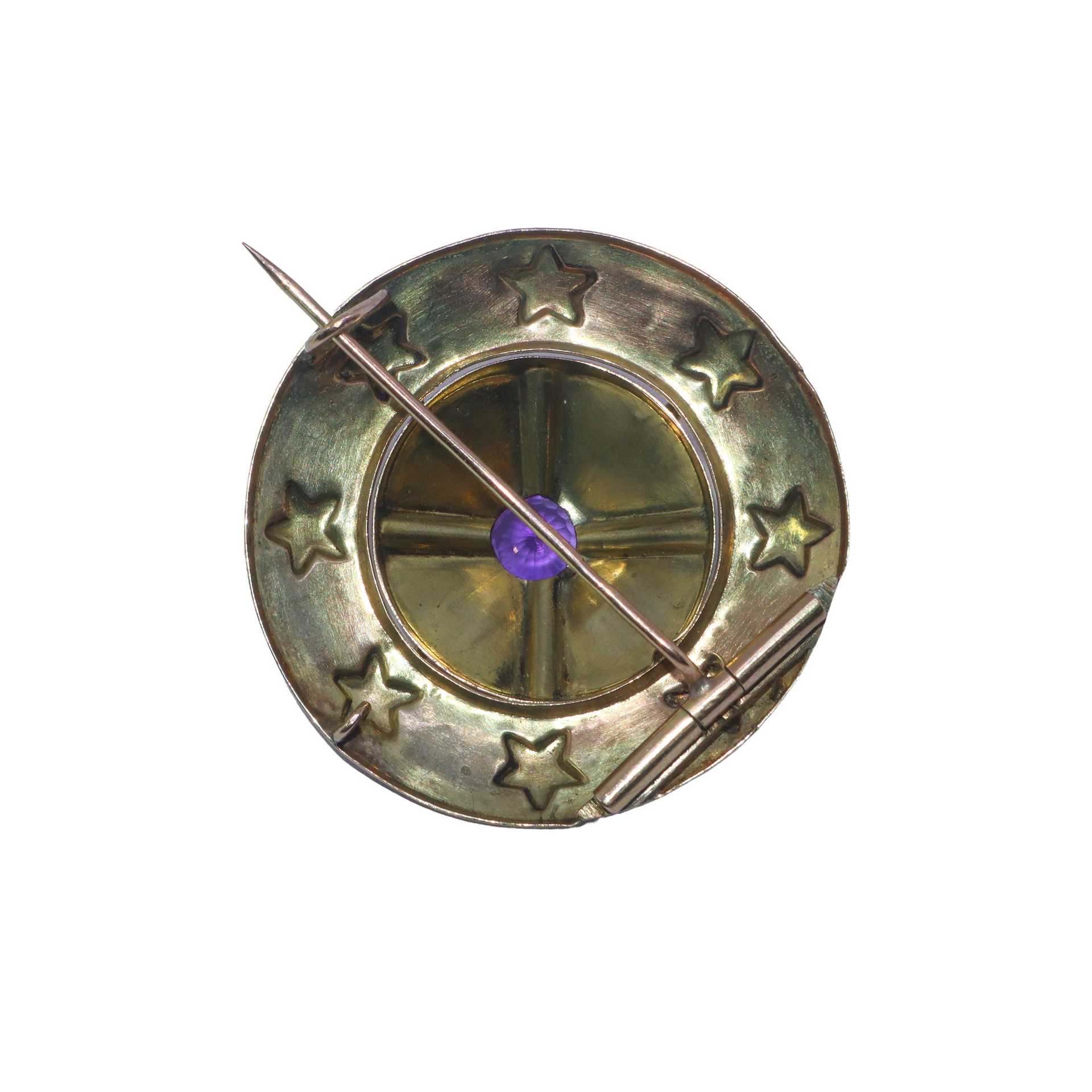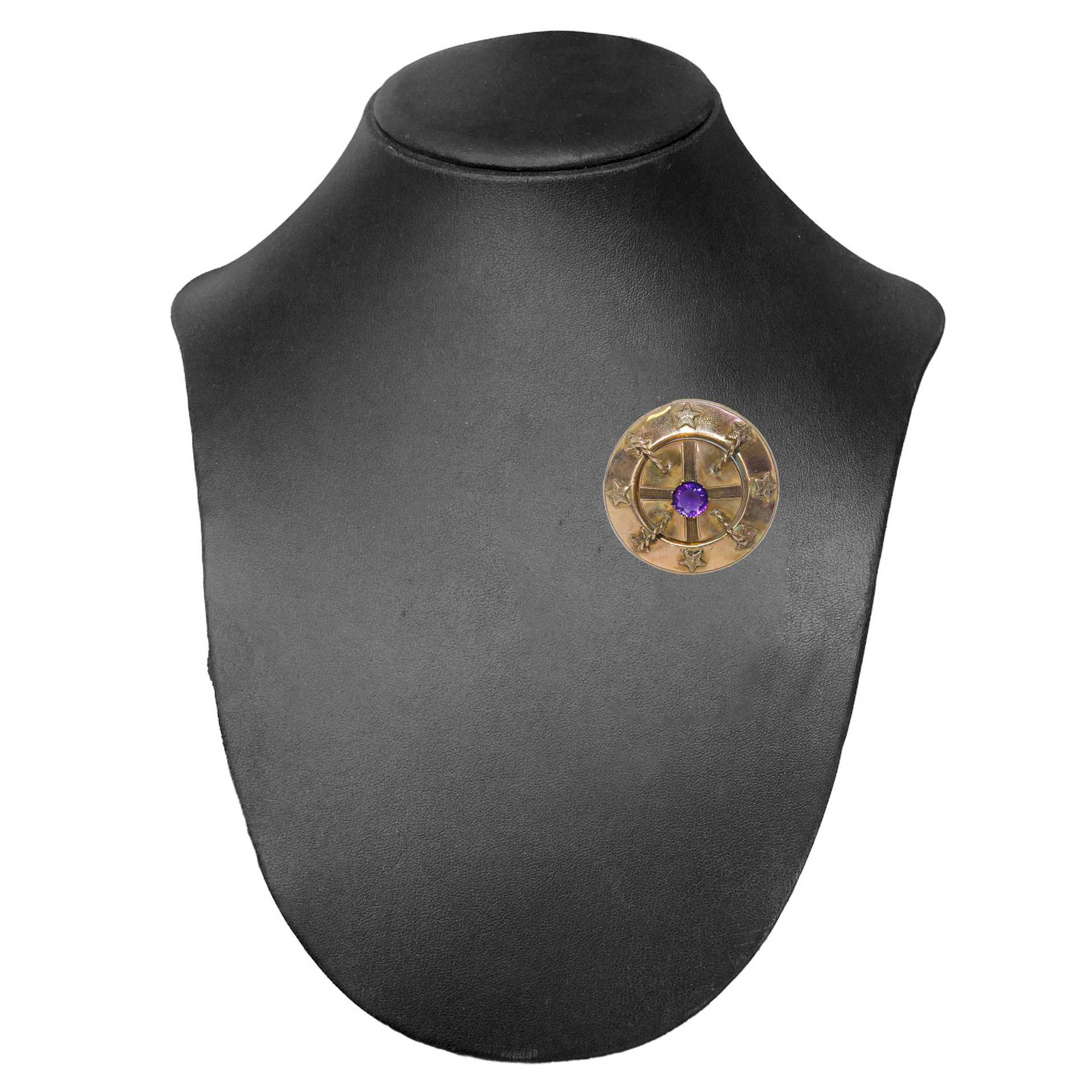 Spilla/Pendentif in oro 9 kt e ametista gr 13,5 diametro cm 5