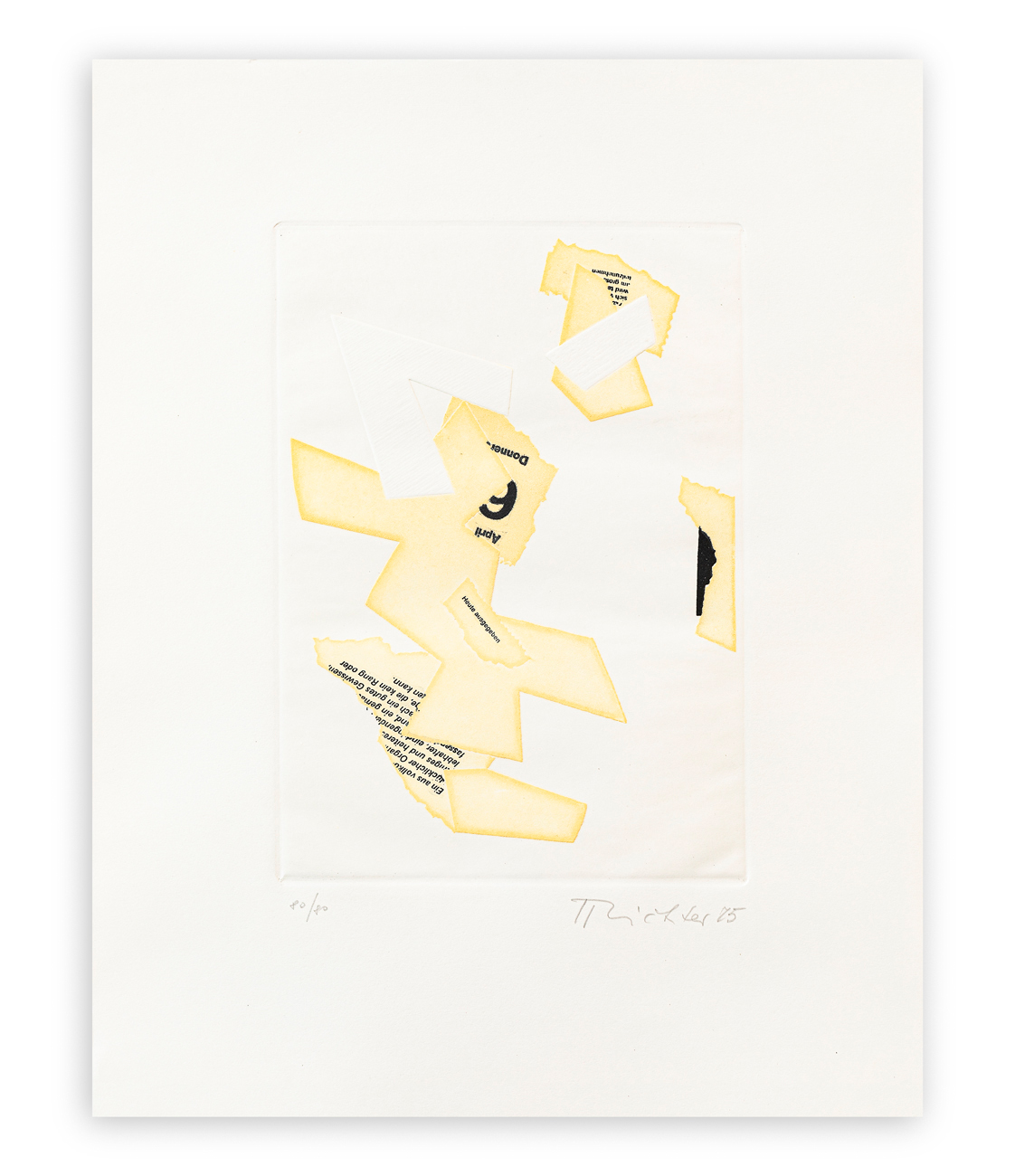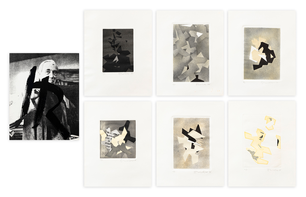Edizione d'arte contenente 12 poesie e 6 acqueforti sciolte di Hans Richter, ciascuna recante firma, datazione e numerazione (Esemplari 10/20 HC) a matita al fronte