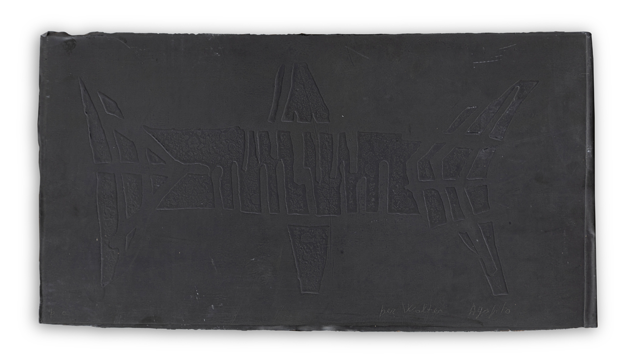 Firma, dedica ad personam e numerazione (Esemplare P. A.) incise al fronte