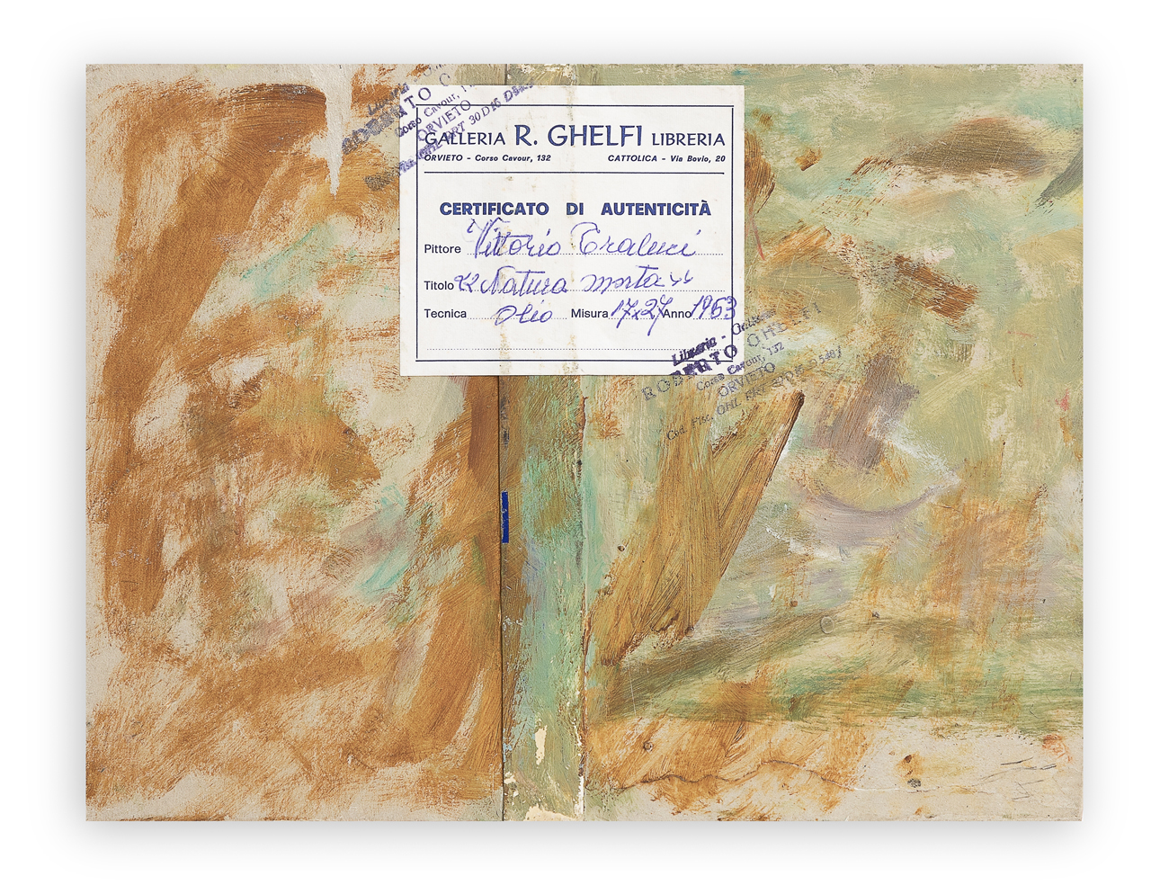 Etichetta della Galleria Ghelfi (Orvieto) al retro
