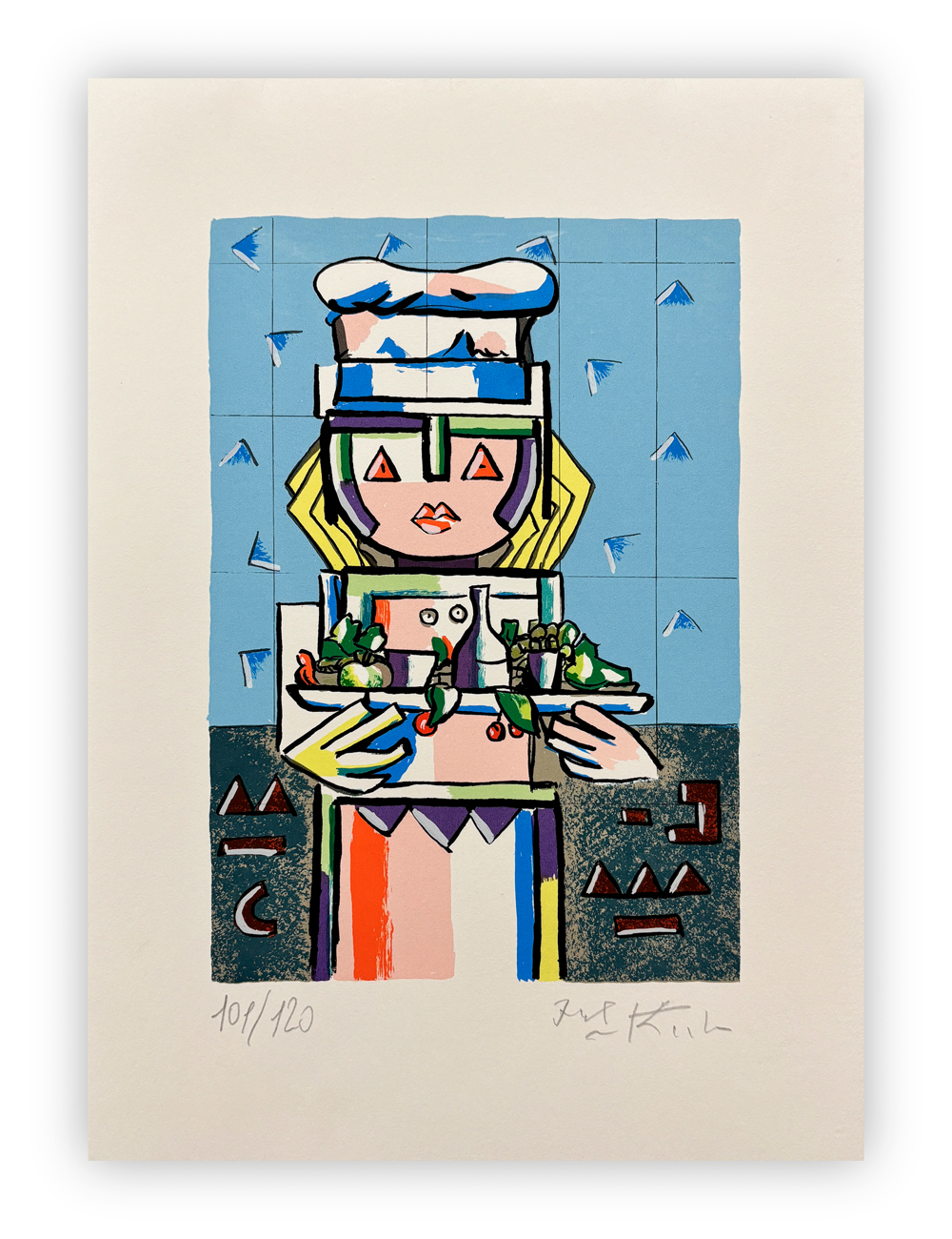 Firma e numerazione (Esemplare 101/120) a matita al fronte