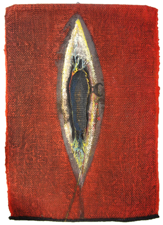 GIULIO GRECO Caselle in Pittari 1949 Orma 1990 Pittura e collage su arazzo 97 x 70. Sul verso misure, titolo, data e firma.
