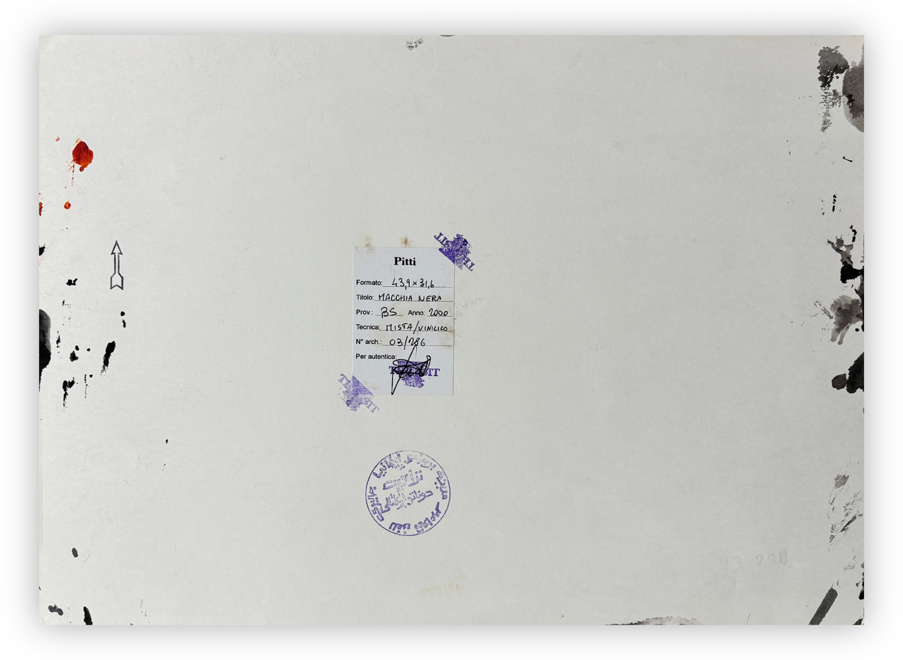Etichetta e timbri della Galleria Transit (BG) al retro