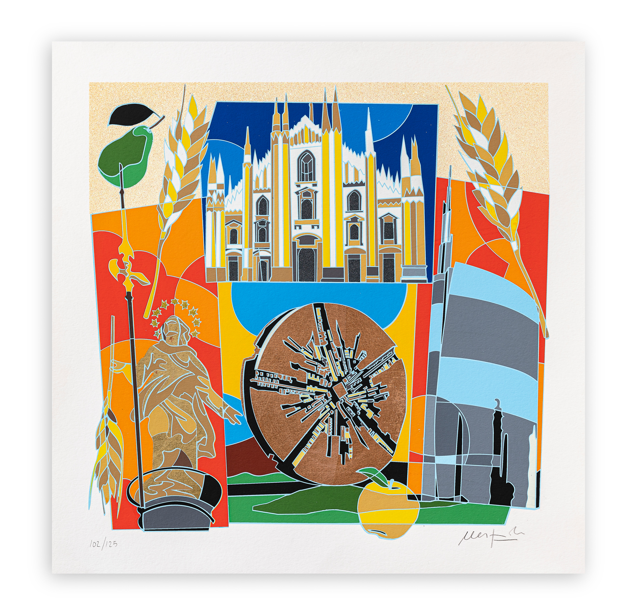Serigrafia polimaterica con interventi in carborundum, floccaggi e passaggio calcografico a secco