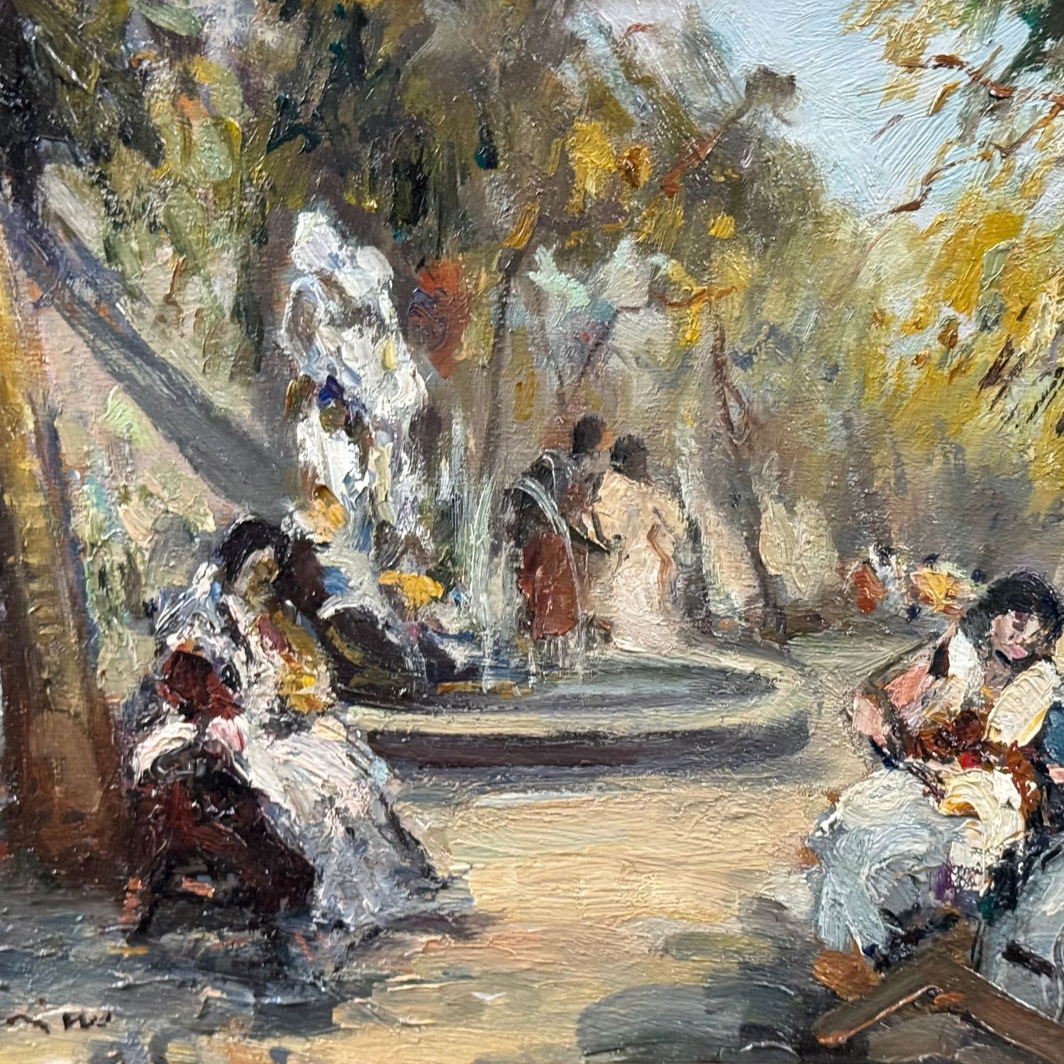 Dipinto olio su tavola, periodo XX secolo scuola Italiana, raffigurante Personaggi.