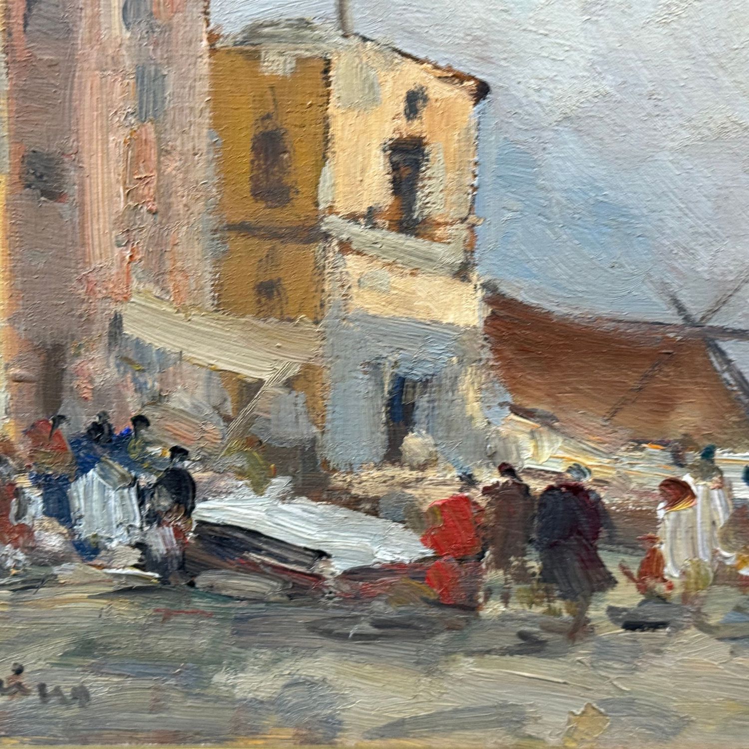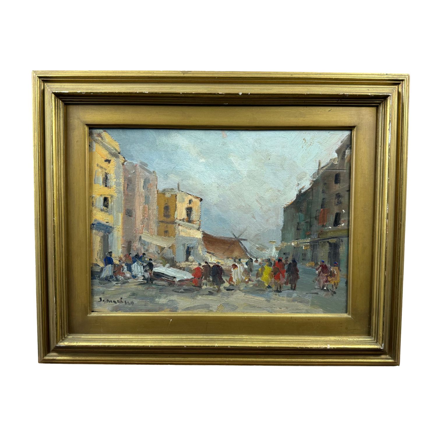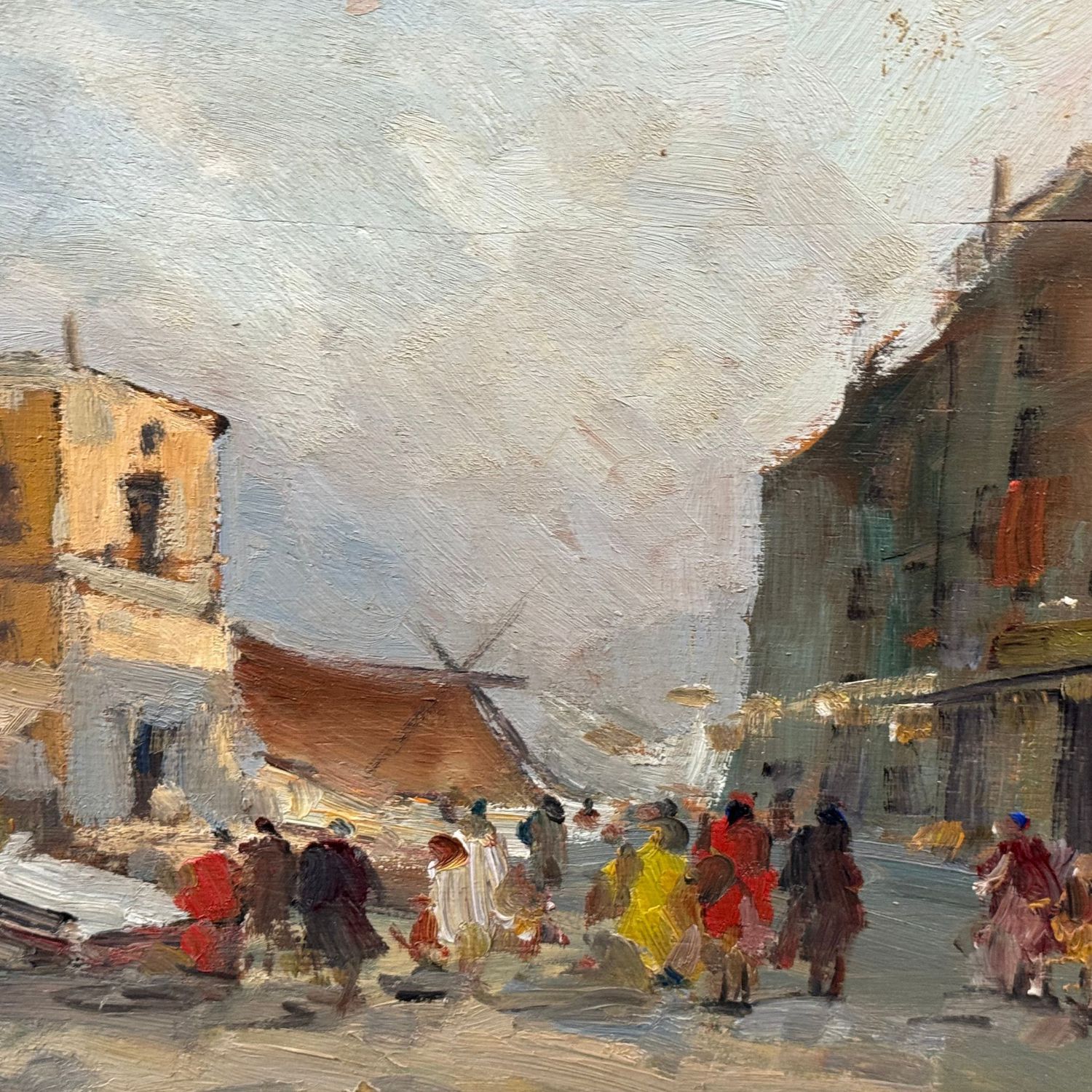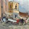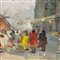 Dipinto olio su tavola, periodo XX secolo scuola Italiana, raffigurante Paesaggio con personaggi.