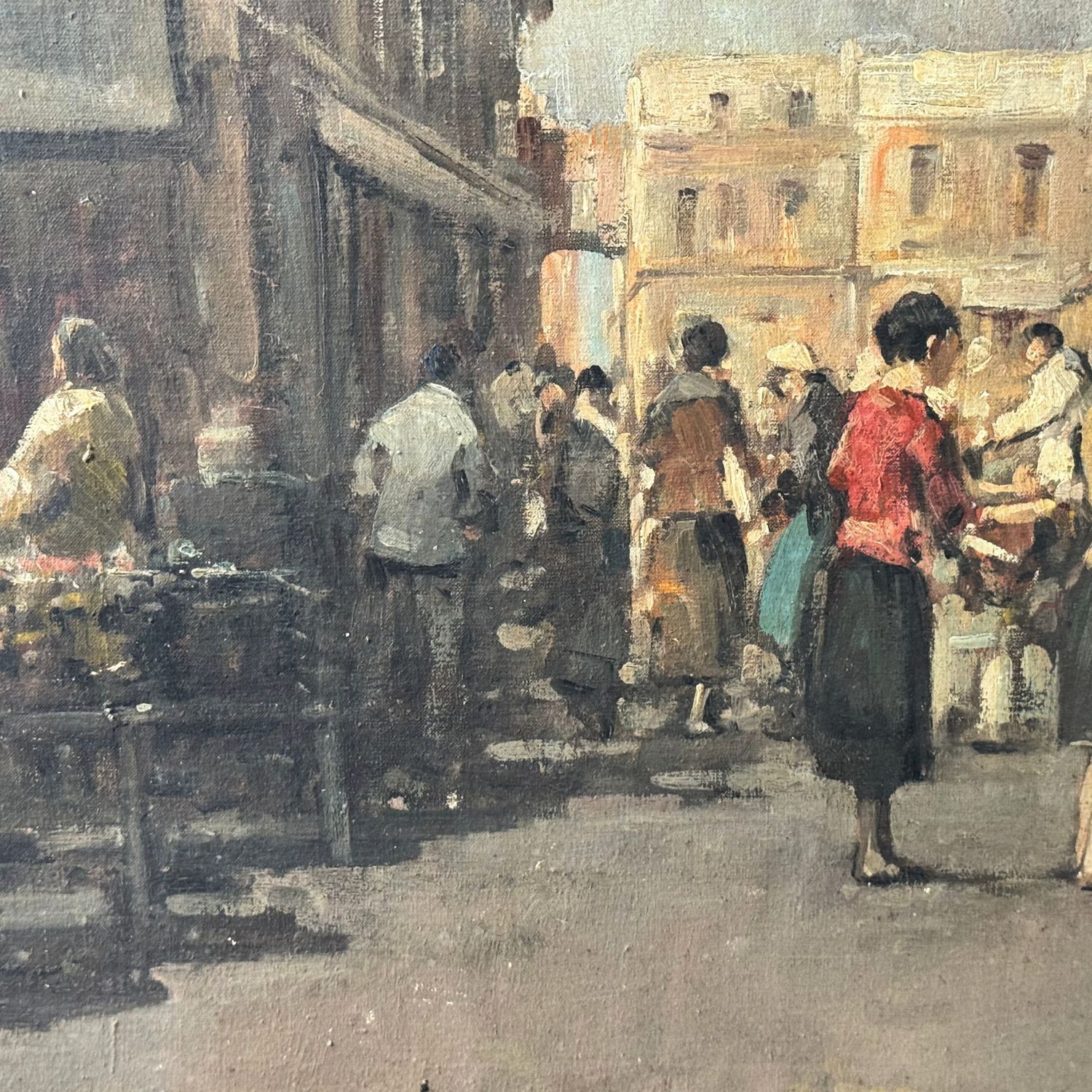 Dipinto olio su tela, periodo XX secolo scuola Italiana, raffigurante Mercato napoletano.