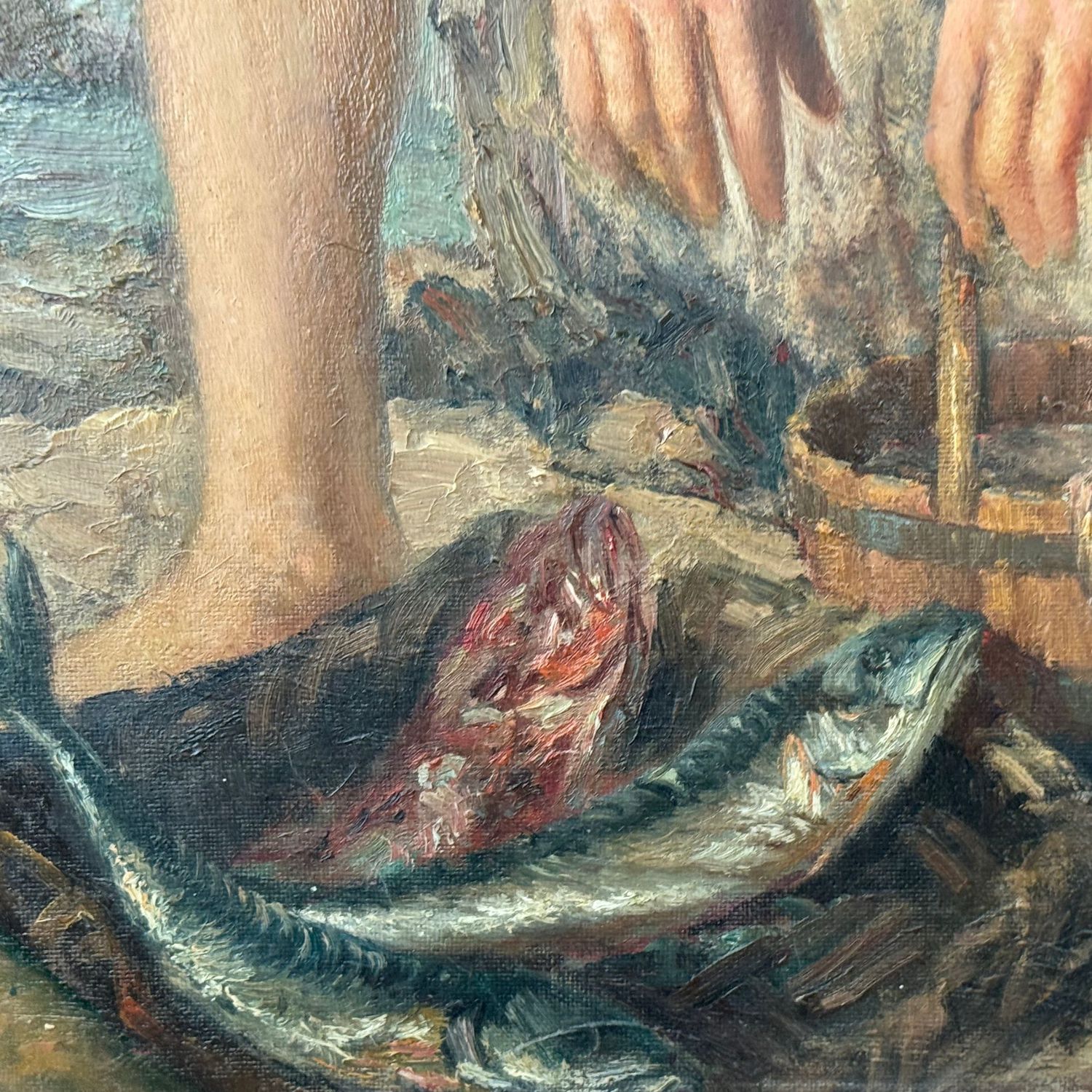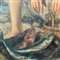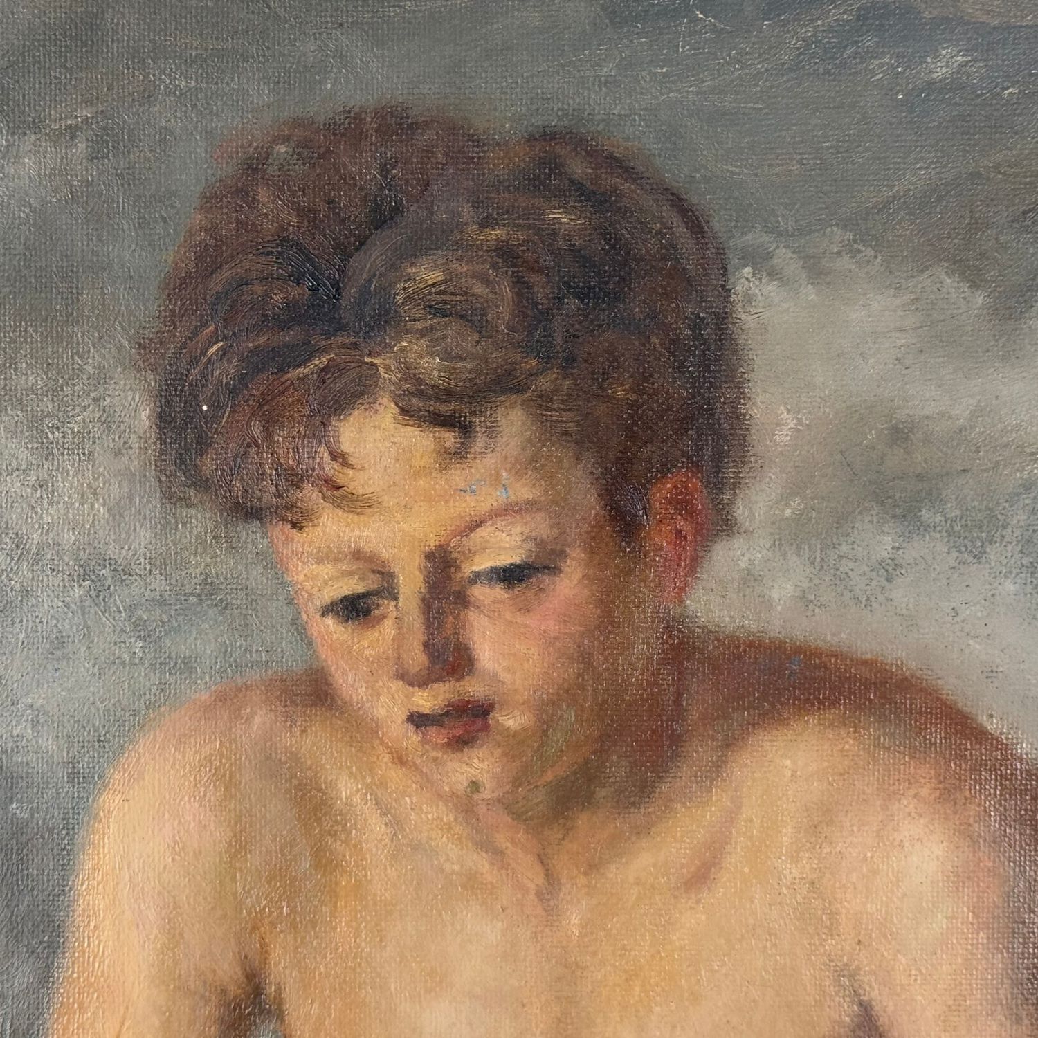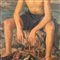 Dipinto olio su tela applicata su pannello, periodo XX secolo scuola Italiana, raffigurante Giovane pescatore.