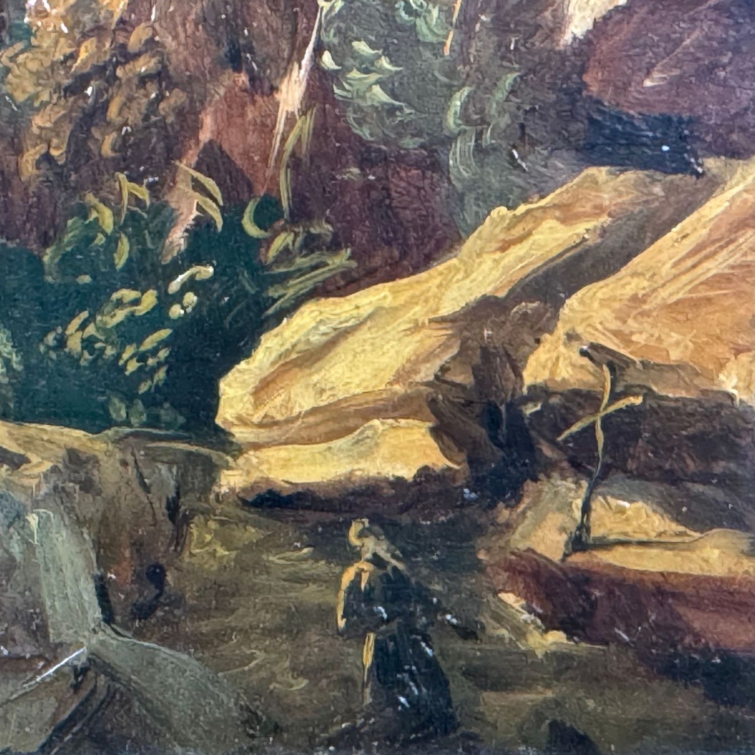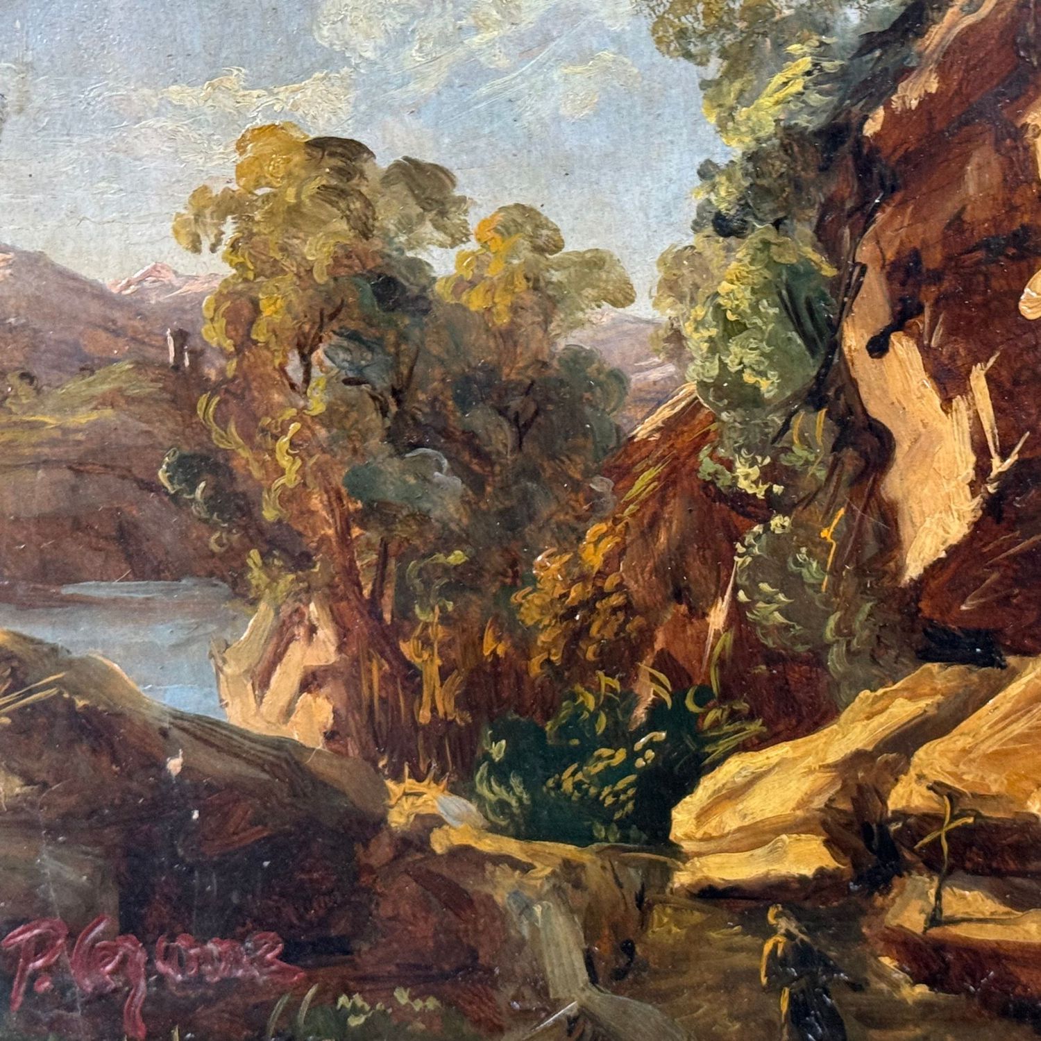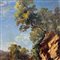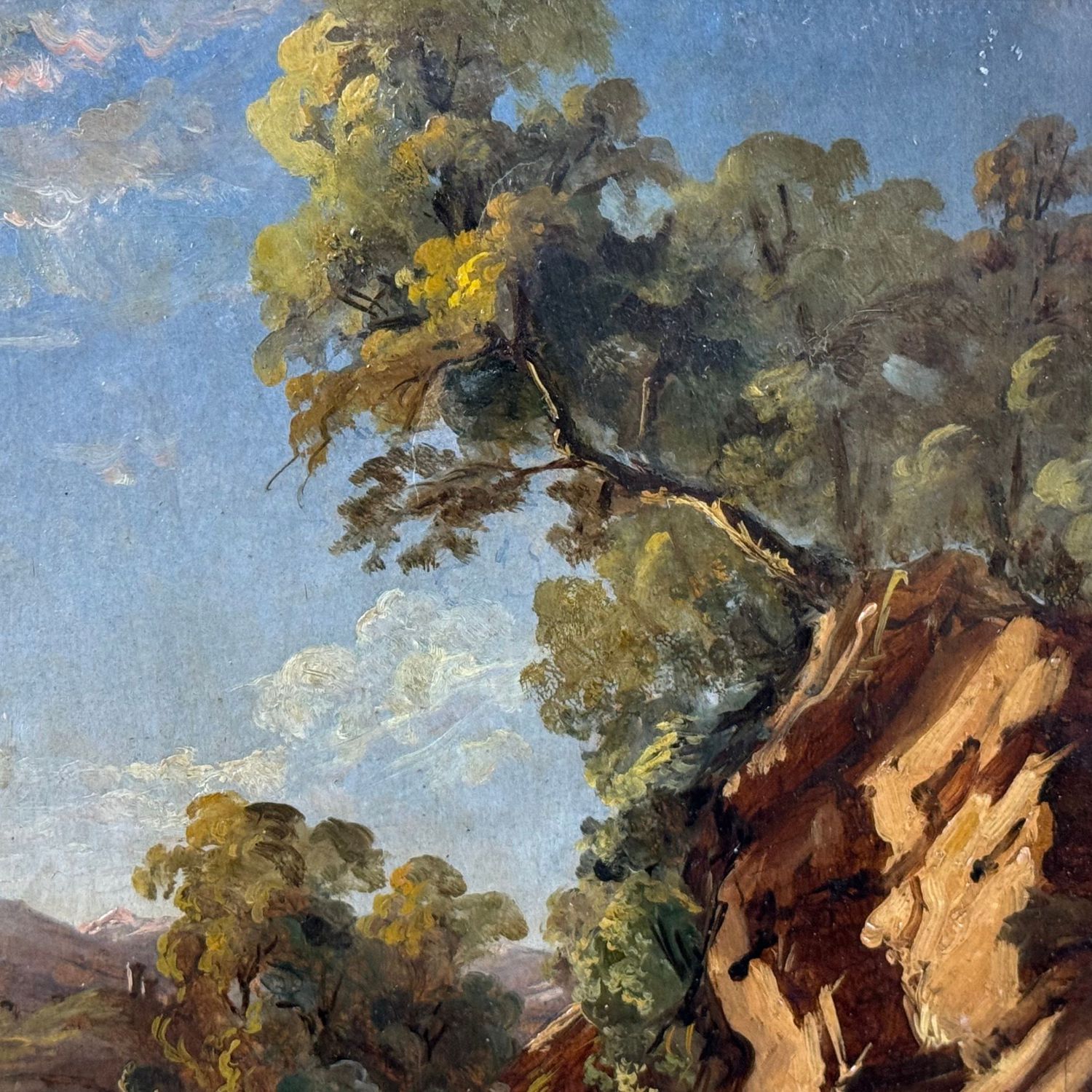 Dipinto olio su cartoncino, periodo XIX/XX secolo scuola Italiana, raffigurante Scorcio di paesaggio.