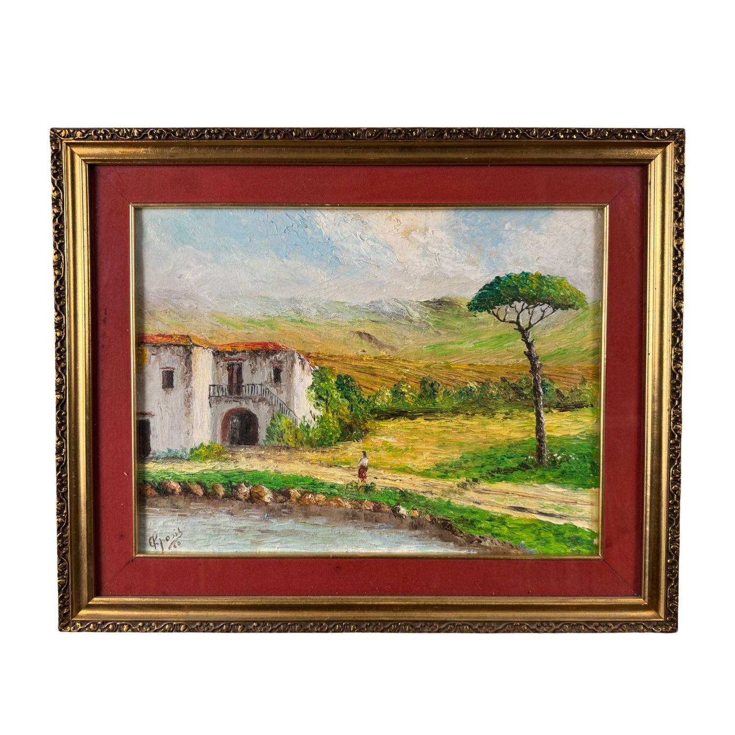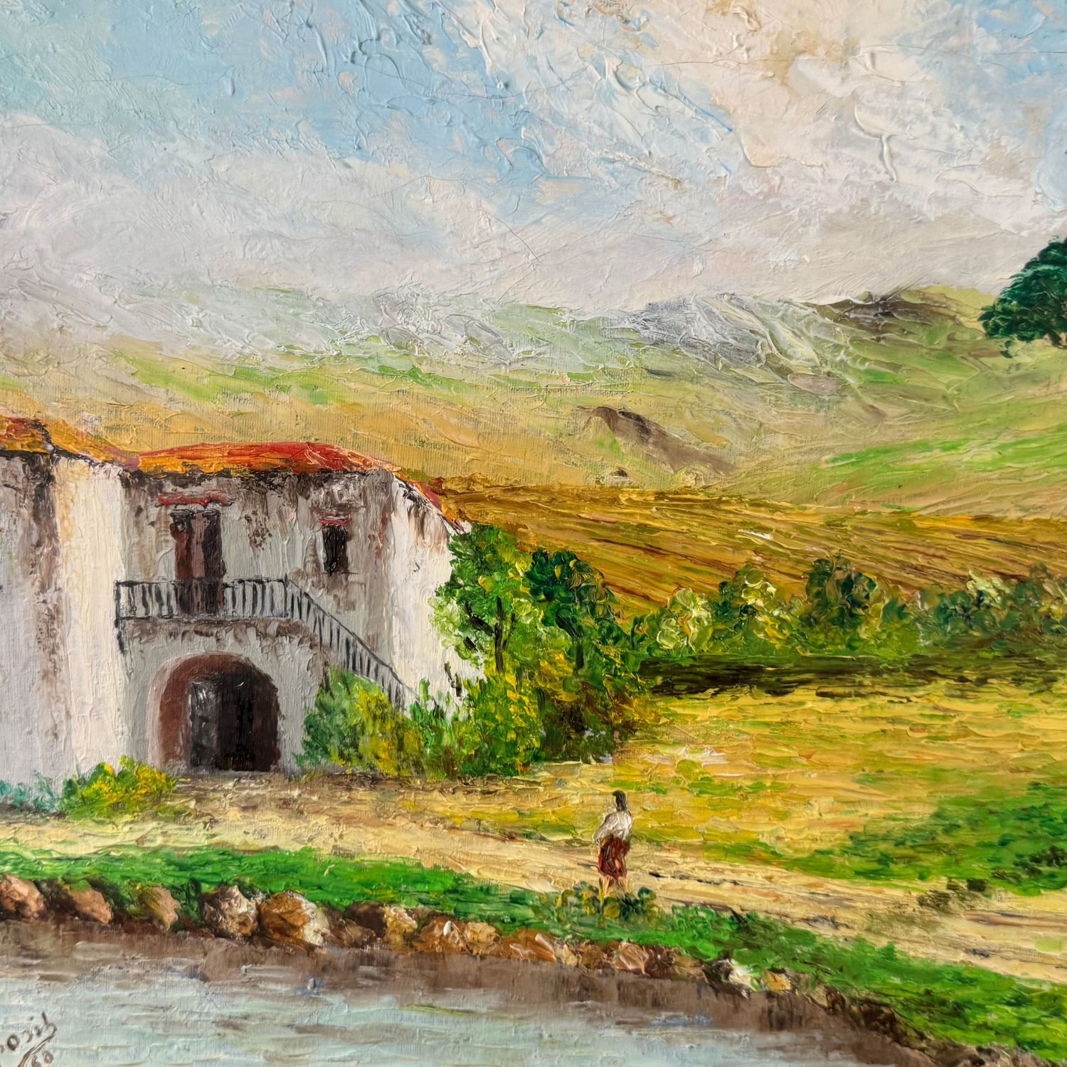 Dipinto olio su tela, periodo XX secolo (1960) scuola Italiana, raffigurante Paesaggio di campagna. Dimensioni interno cornice: 40x30 cm. Dimensioni compreso cornice: 51x41 cm. Reca firma in basso a sinistra di difficile lettura. Opera in buone condizioni.