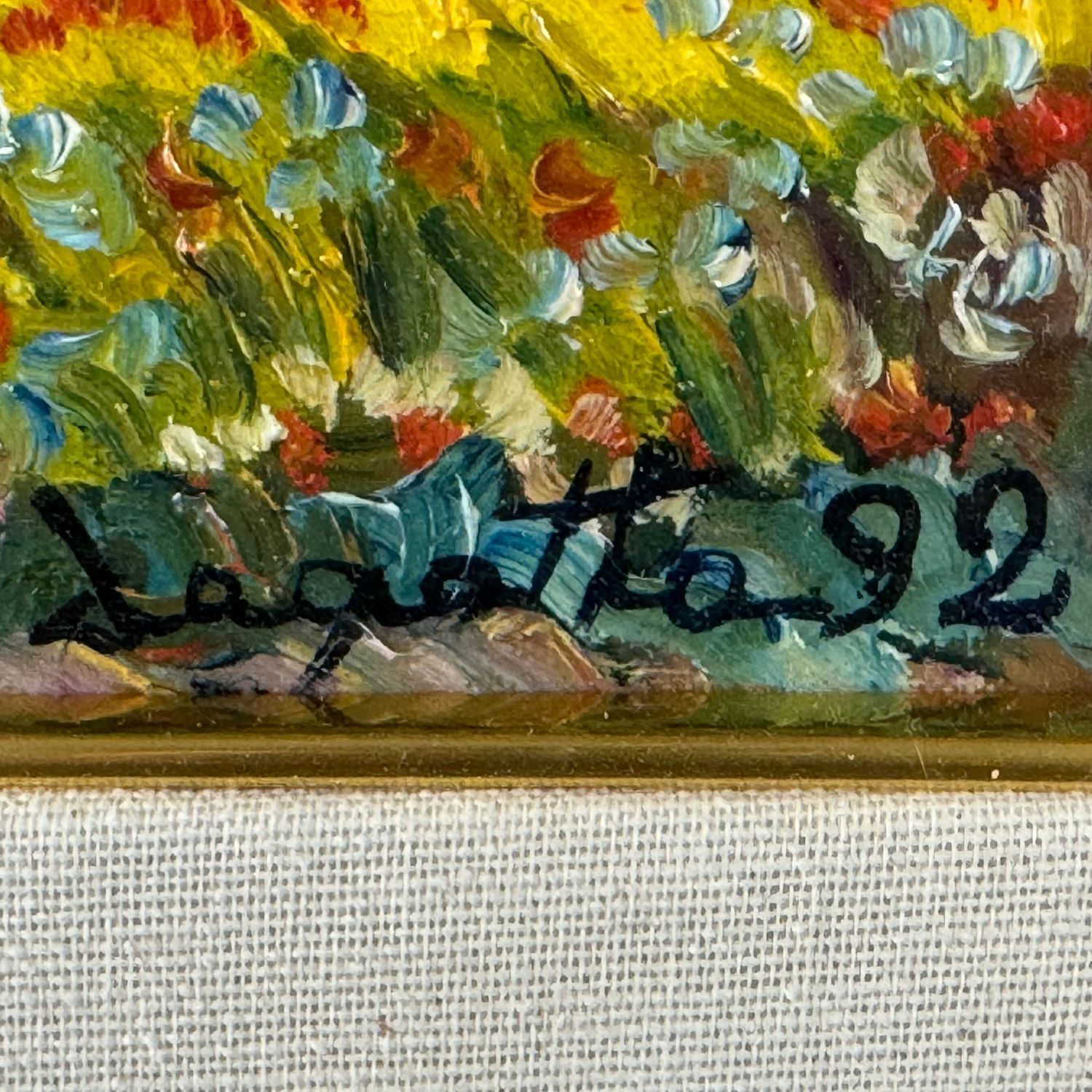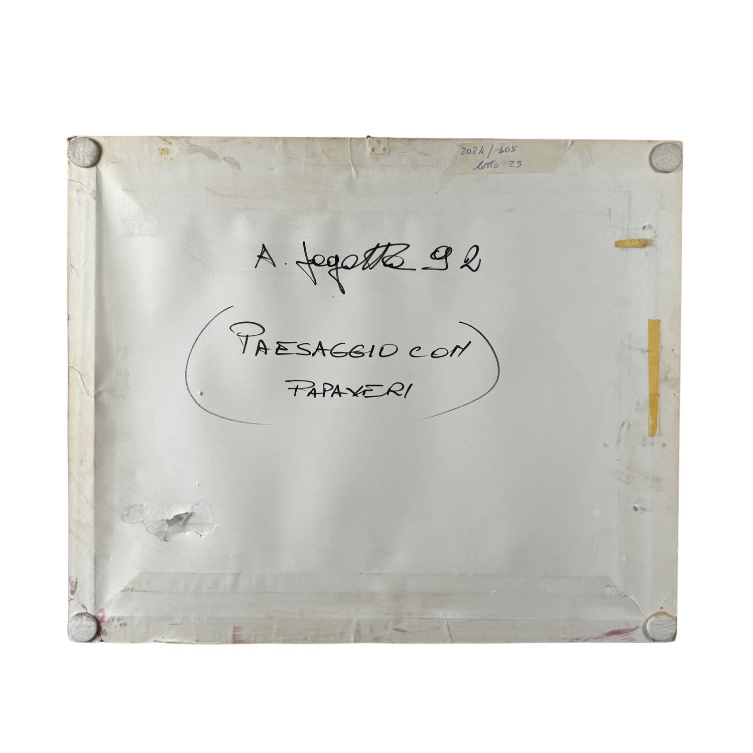 Dipinto olio su tavola, periodo XX secolo scuola Italiana, raffigurante Paesaggio con papaveri. Dimensioni interno cornice: 30x20 cm. Dimensioni compreso cornice: 50x42 cm. Reca firma in basso a destra A. Lagatta. Opera in buone condizioni.