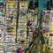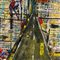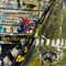 Dipinto acrilico e collage su tavola, raffigurante Spiderman. Dimensioni: 90x90 cm. Reca firma in basso a sinistra di difficile lettura.