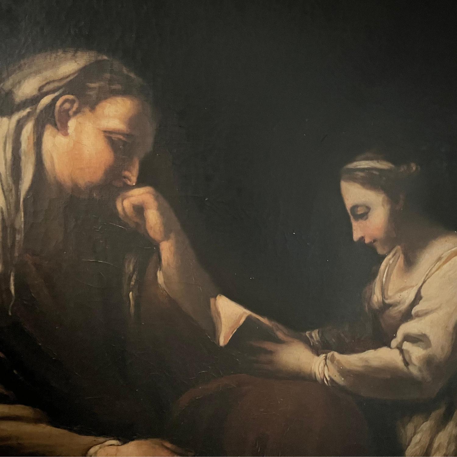 Dipinto olio su tela XIX secolo, raffigurante La lettura di Maria.