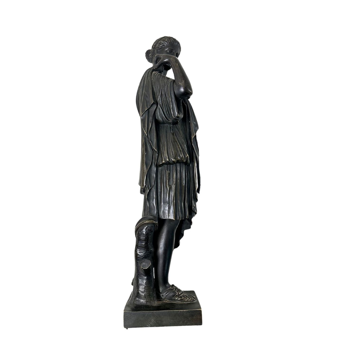 Scultura in bronzo satinato, finemente lavorata, periodo XIX secolo, raffigurante donna in abito romano.
