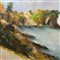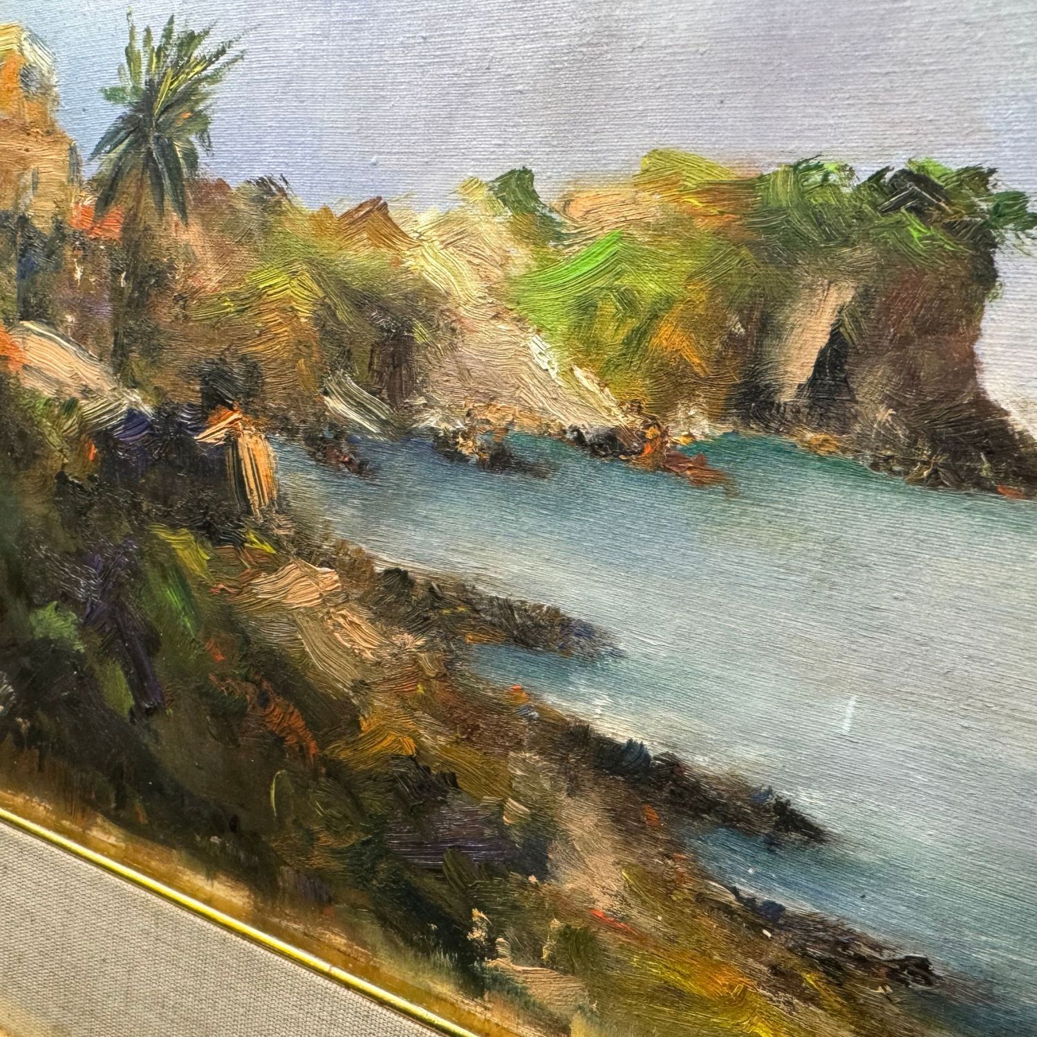 Dipinto olio su tela, periodo XX secolo scuola Italiana, raffigurante Marina con ruderi.