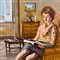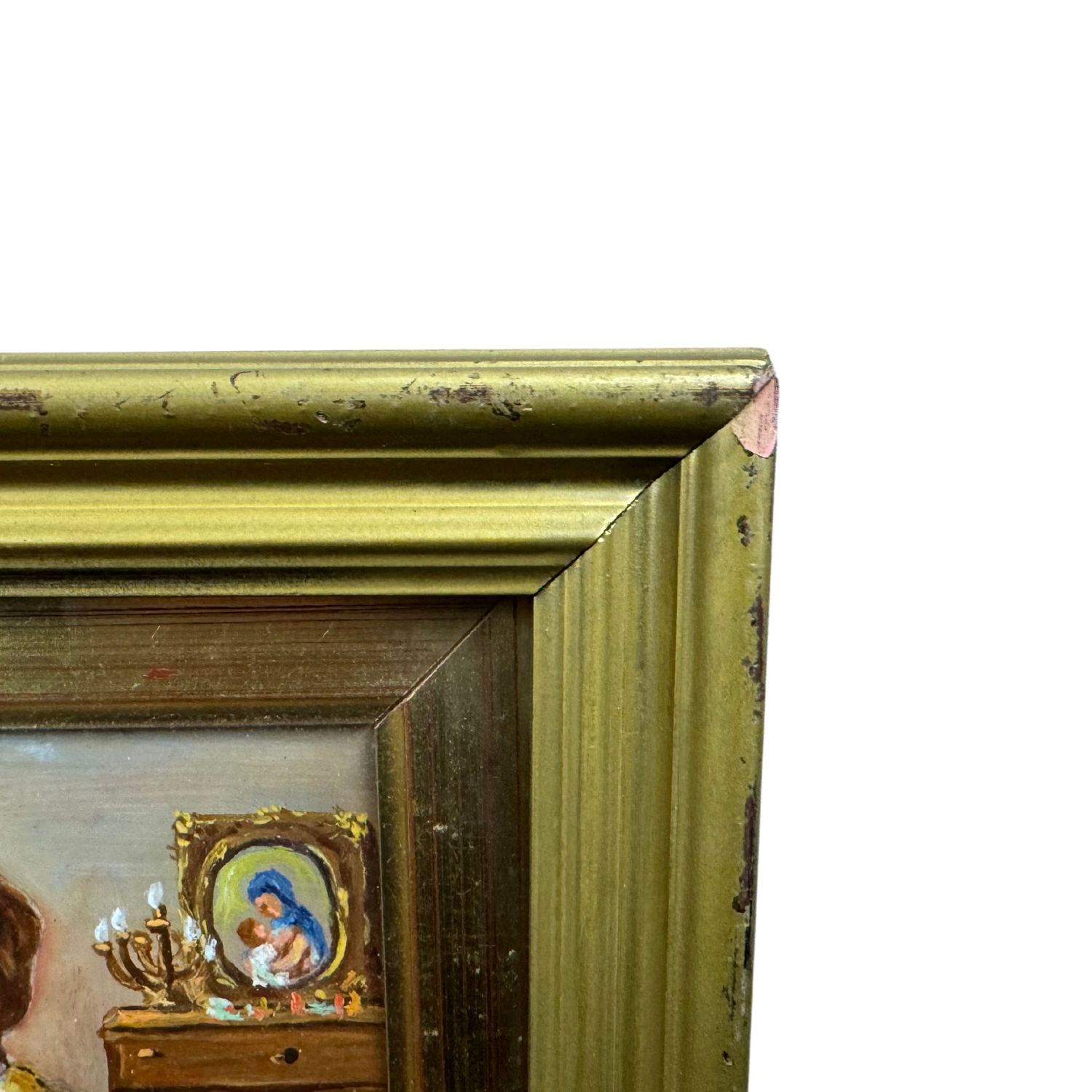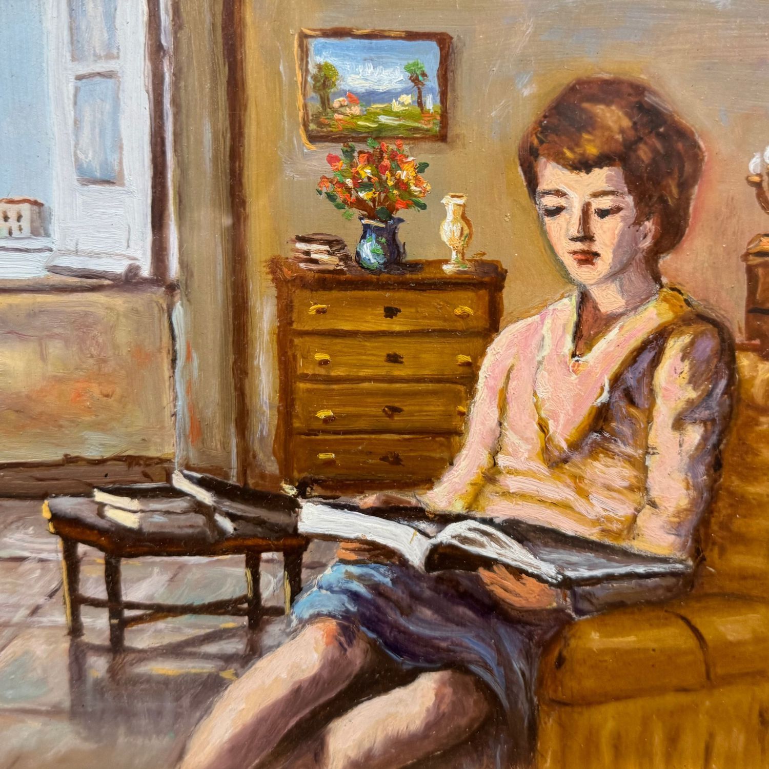 Dipinto olio su pannello, periodo XX secolo scuola Italiana, raffigurante Donna in lettura.