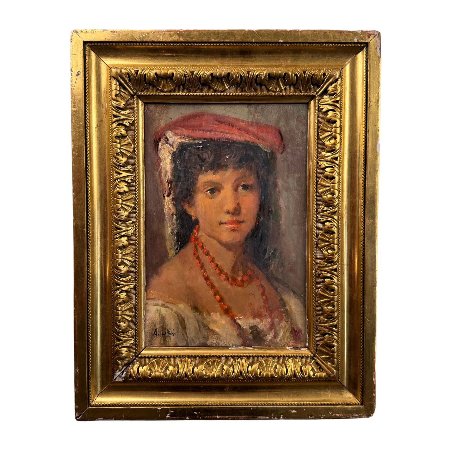 Dipinto olio su tavola, periodo XIX/XX secolo scuola Italiana, raffigurante Ritratto di giovane donna.
