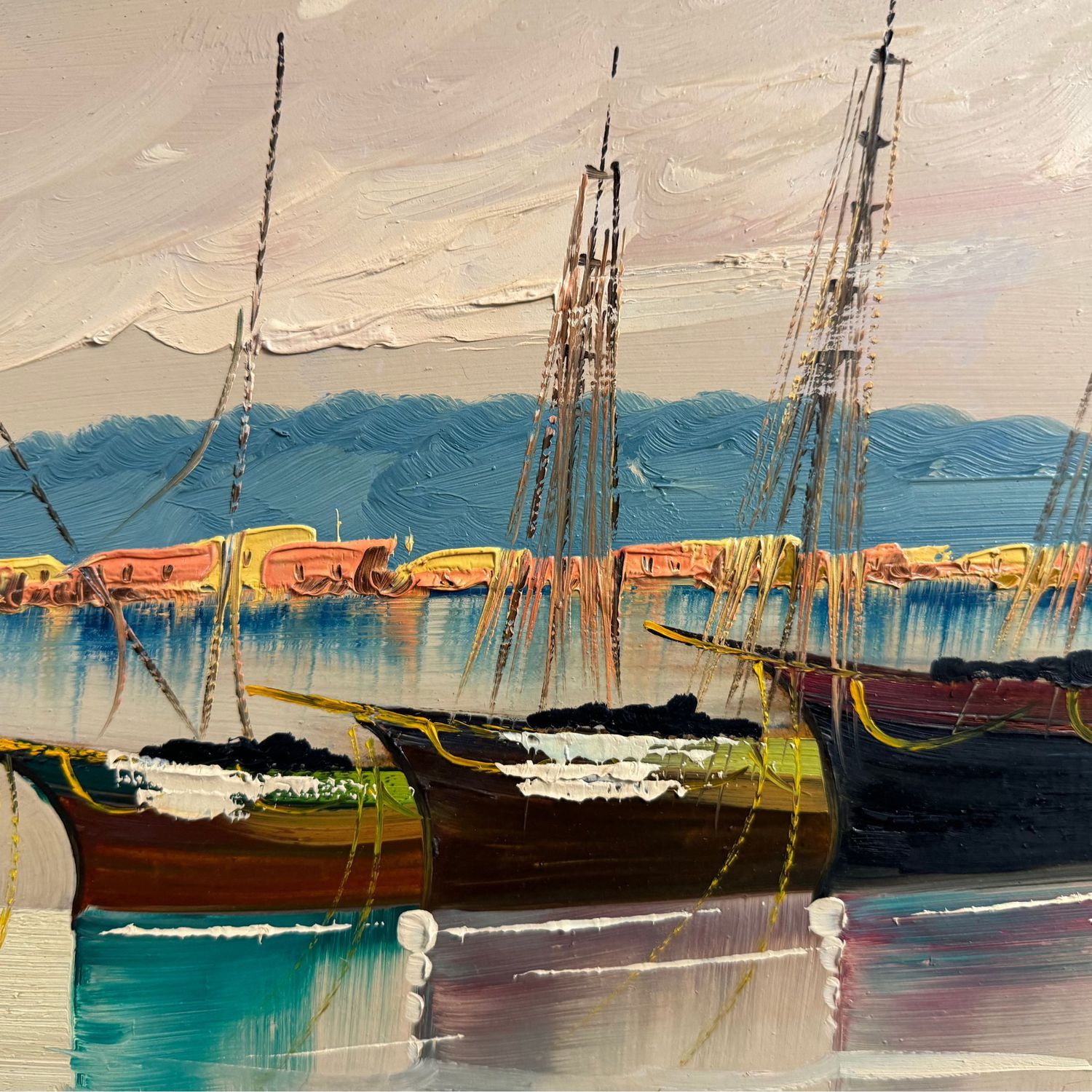 Dipinto olio su pannello, periodo XX secolo scuola Italiana, raffigurante Paesaggio marino.