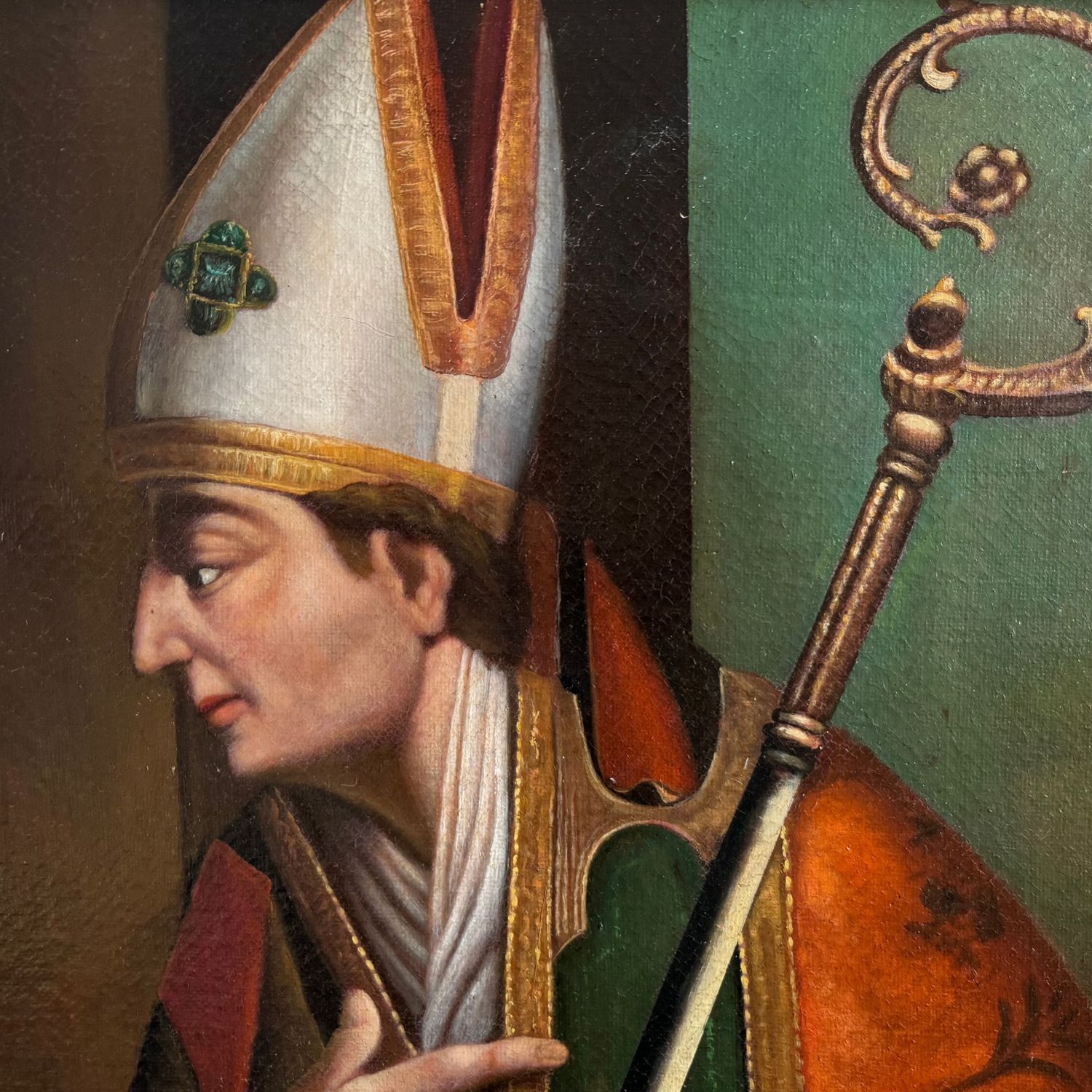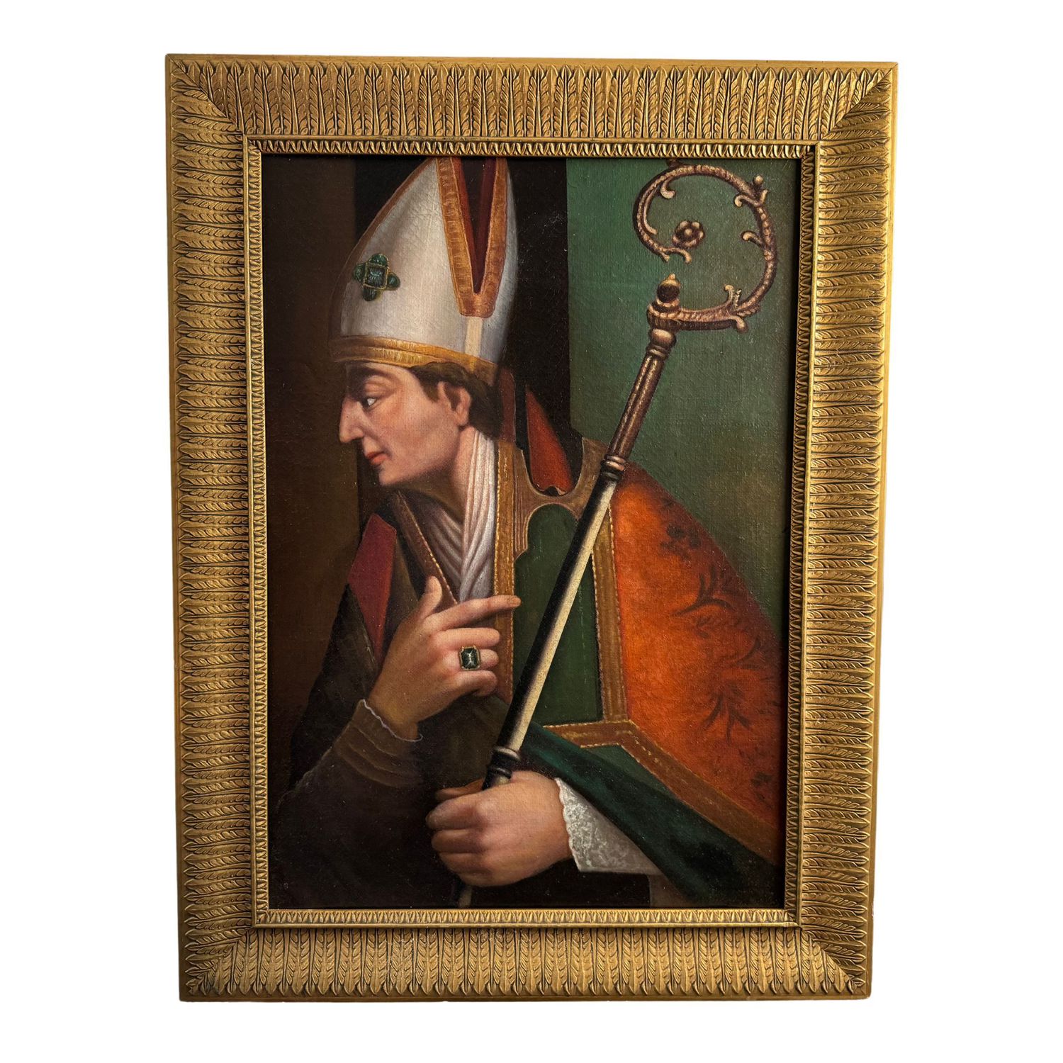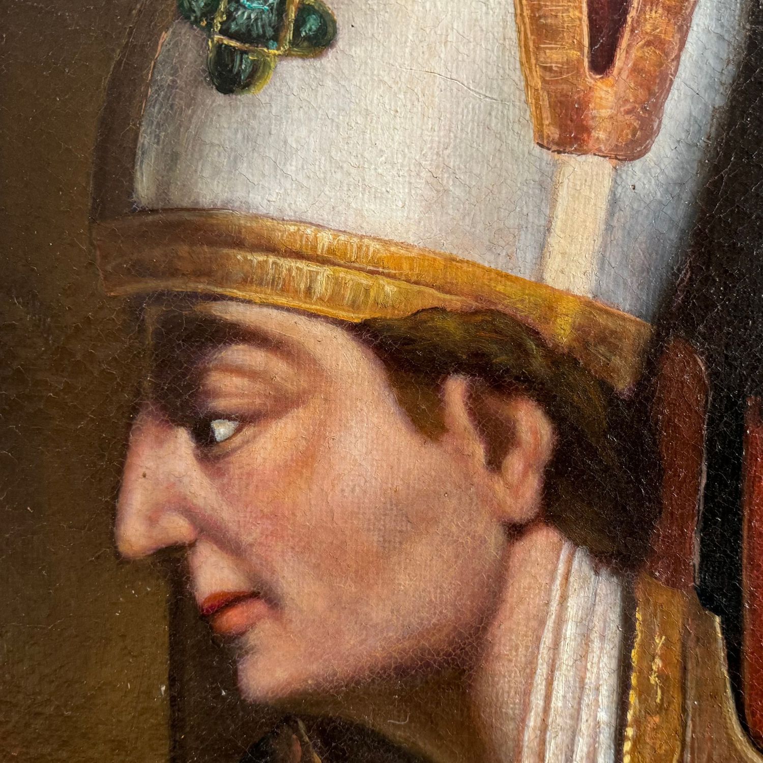 Dipinto olio su tela, periodo XIX secolo scuola Italiana, raffigurante Sant'Ambrogio